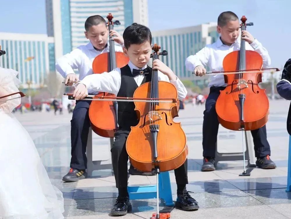 在拍摄过程中,小学员们面对镜头和驻足的观众时,依然拿出了自己最好的状态进行演奏。俗话说“台上一分钟,台下十年功”,这也是平时坚持练习的成果。
