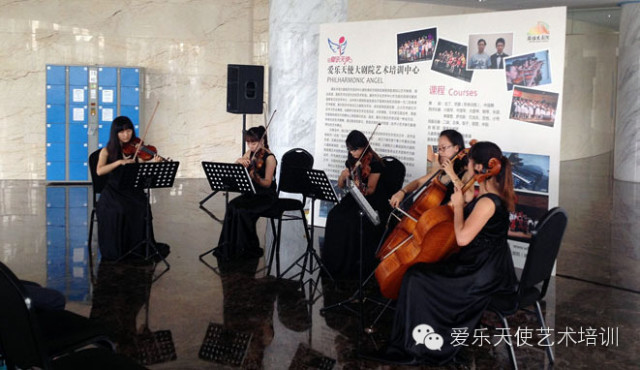 为了能够让前来的市民们近距离感受到古典音乐的魅力,爱乐天使的老师们于剧院大厅上演了一场古典音乐秀。给在场的观众人群们带来了一次非凡的试听享受,参观的群众们纷纷驻足流连,给予老师们的演出热烈的掌声。