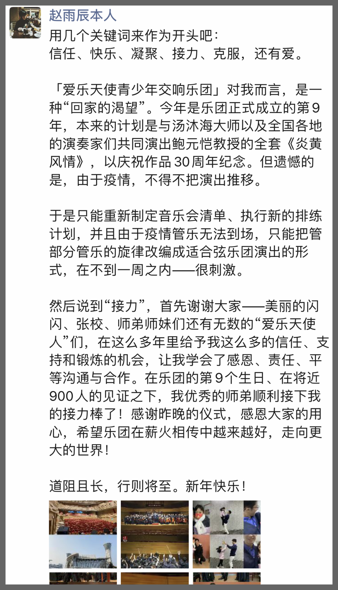 也许有天所有参与到这个集体的同学都会被记录在册,他们的图片、声音和影像都将成为珍贵的资料,让后来的同学们知道师哥师姐们的过往,把优秀当做一种爱乐天使的文化传承,以严格要求自己来继续这种传承。这是爱乐天使精神!
