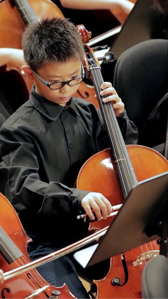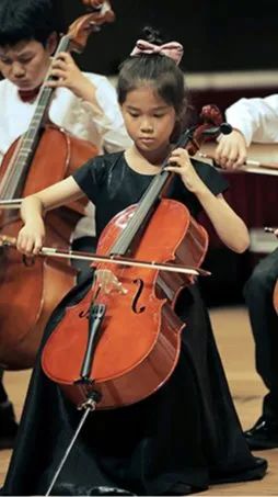 爱乐天使张文慧校长在观众的掌声中登台,对到场的观众进行了热情的问候,表达了在音乐厅舞台上与观众重逢的喜悦。同时也向台下的观众解读到,在他身后这批已整齐就坐的大提琴学员,就是本次开放日的第一个节目。这批学员中,年龄最小的只有4岁。