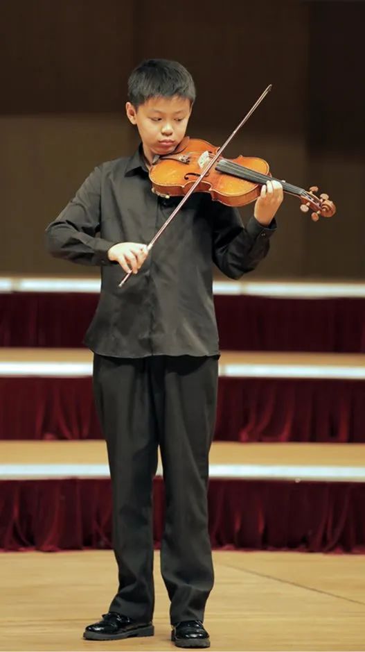 3人小组的节目之后,是6位年龄稍长的学员登台亮相,他们一身黑衣也表明了他们已是爱乐天使A团成员的身份。这几位学员目前大多在小学5-6年级,学琴亦有数年的时间了,在大型比赛和演出中登台次数最少的也已不下10次。熟练的技艺、良好的心理素质和丰富的演出经验让台上的他们看起来光彩熠熠,许多家长拿起手机,记录下这组精彩的演出。