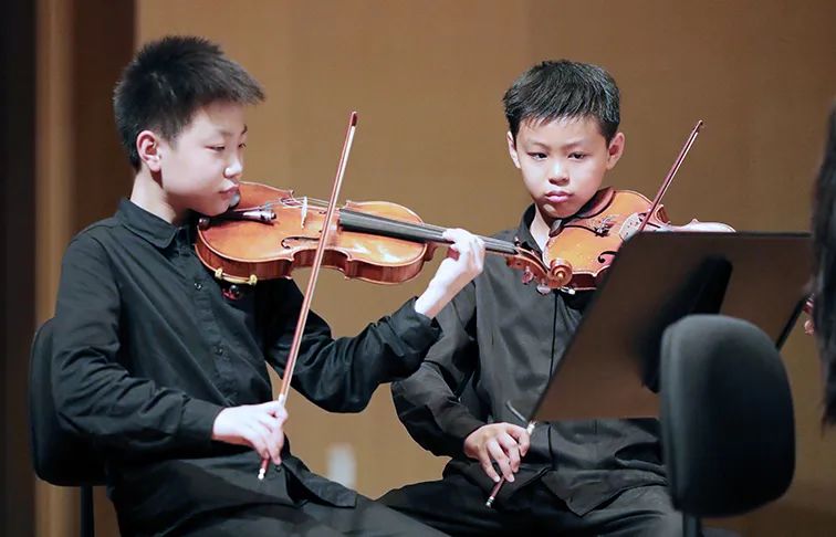 上午场的演出中,有一个节目的成员比较特殊。这个节目共有3名学员登台演奏,而这个节目的学员出自于我校的小组课课堂。小组课,是由年龄和水平相近的学员组合而成的,是我校课堂一种重要的组织形式。在小朋友学习小提琴的不同阶段时期,有时通过这种班级的组织形式,能更好的激发孩子兴趣,调动学琴练琴的积极性,也为学员更好的融入乐团奠定了良好的基础。