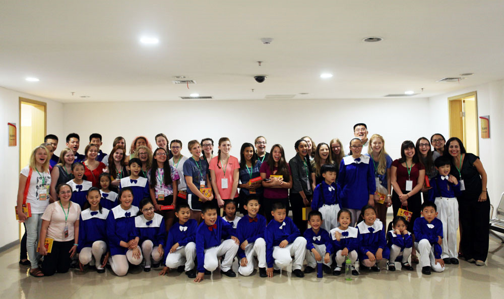 | 2015年6月6日晚19点30分,潍坊爱乐天使童声合唱团与美国亚利桑那少女合唱团在潍坊大剧院音乐厅进行了交流并同台演出。 |