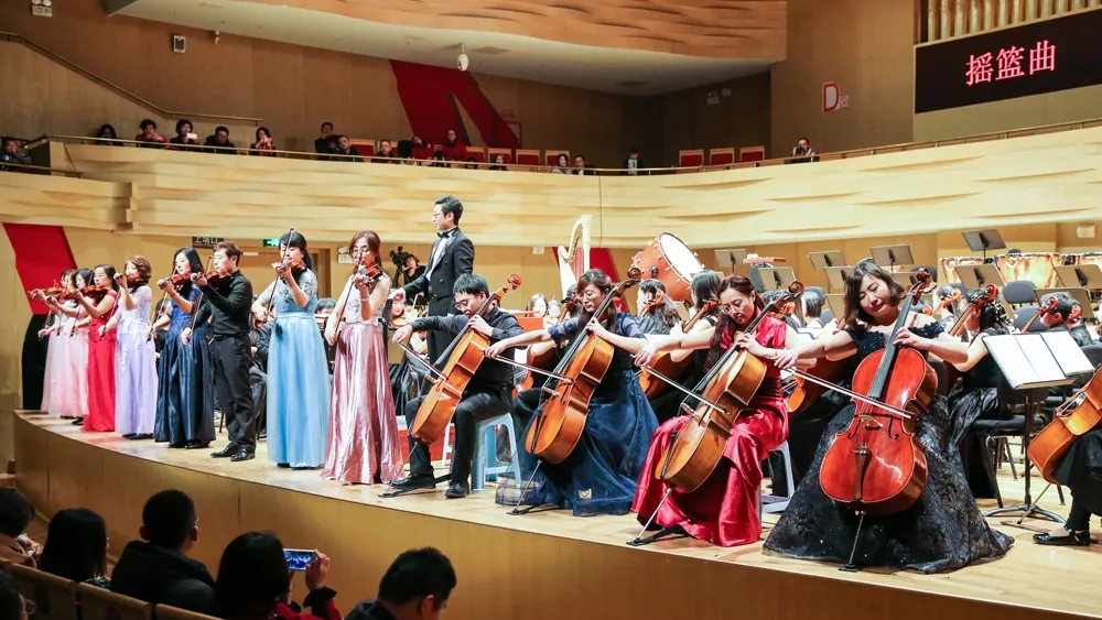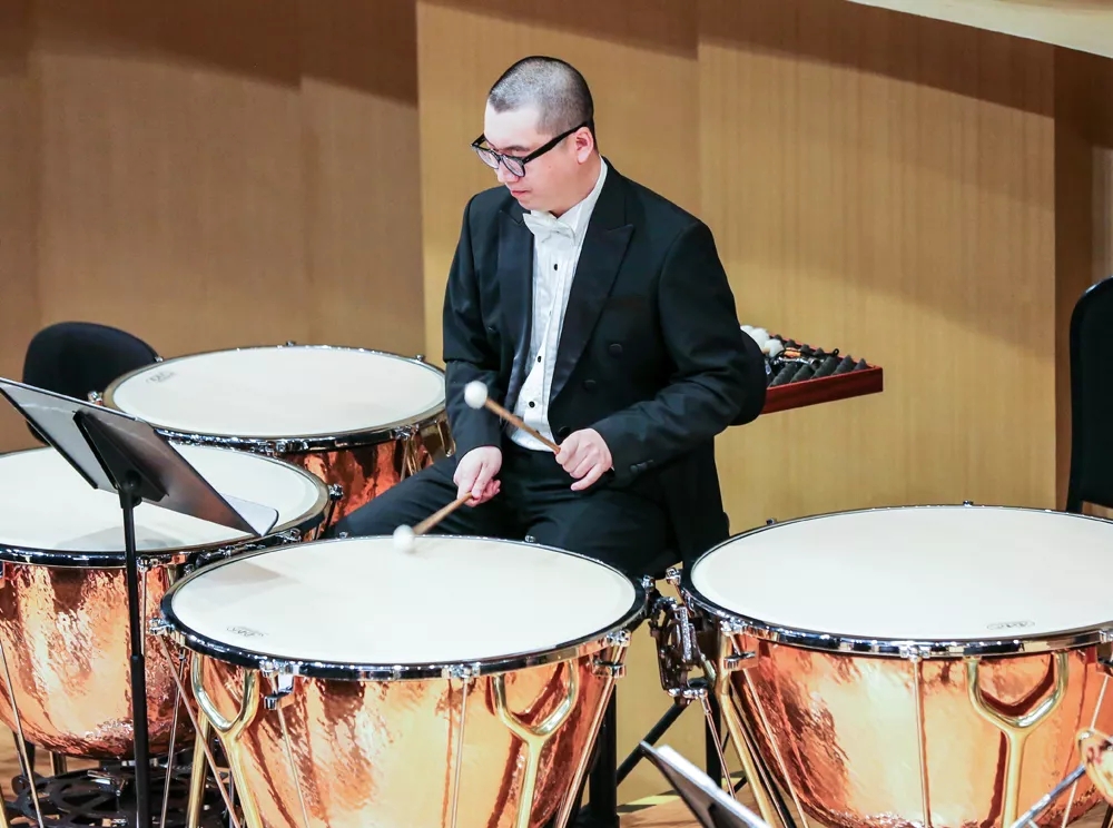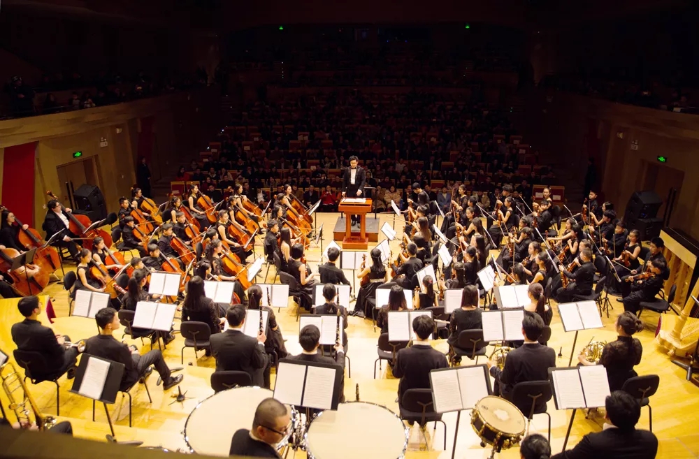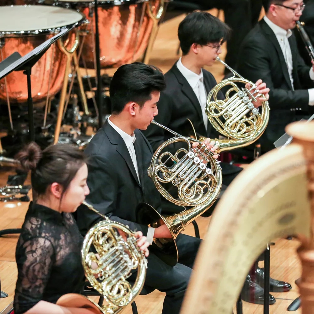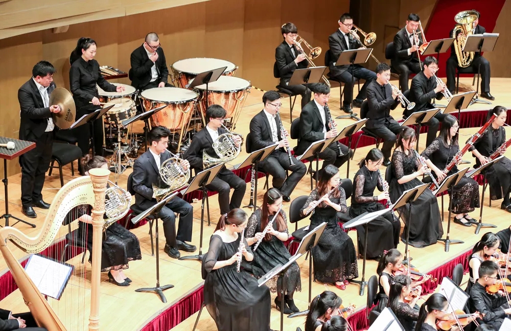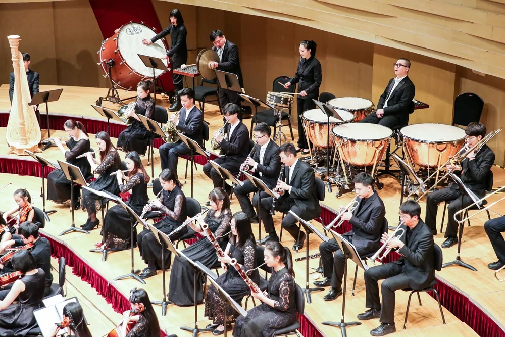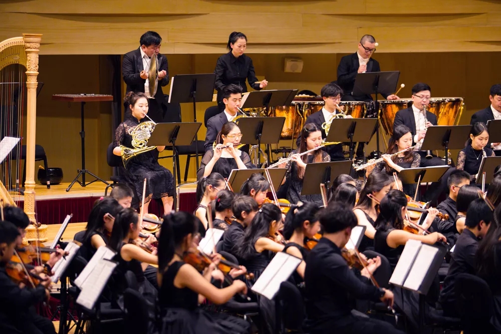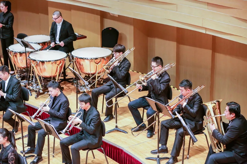 在今年的音乐会中,我们采取了与音乐学院合作的新方式。此次演出的低音提琴组、木管组、铜管组、打击乐组等乐器演奏员均来自各大高校及专业交响乐团。