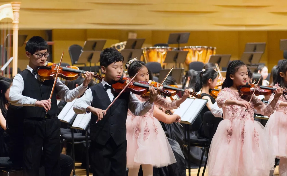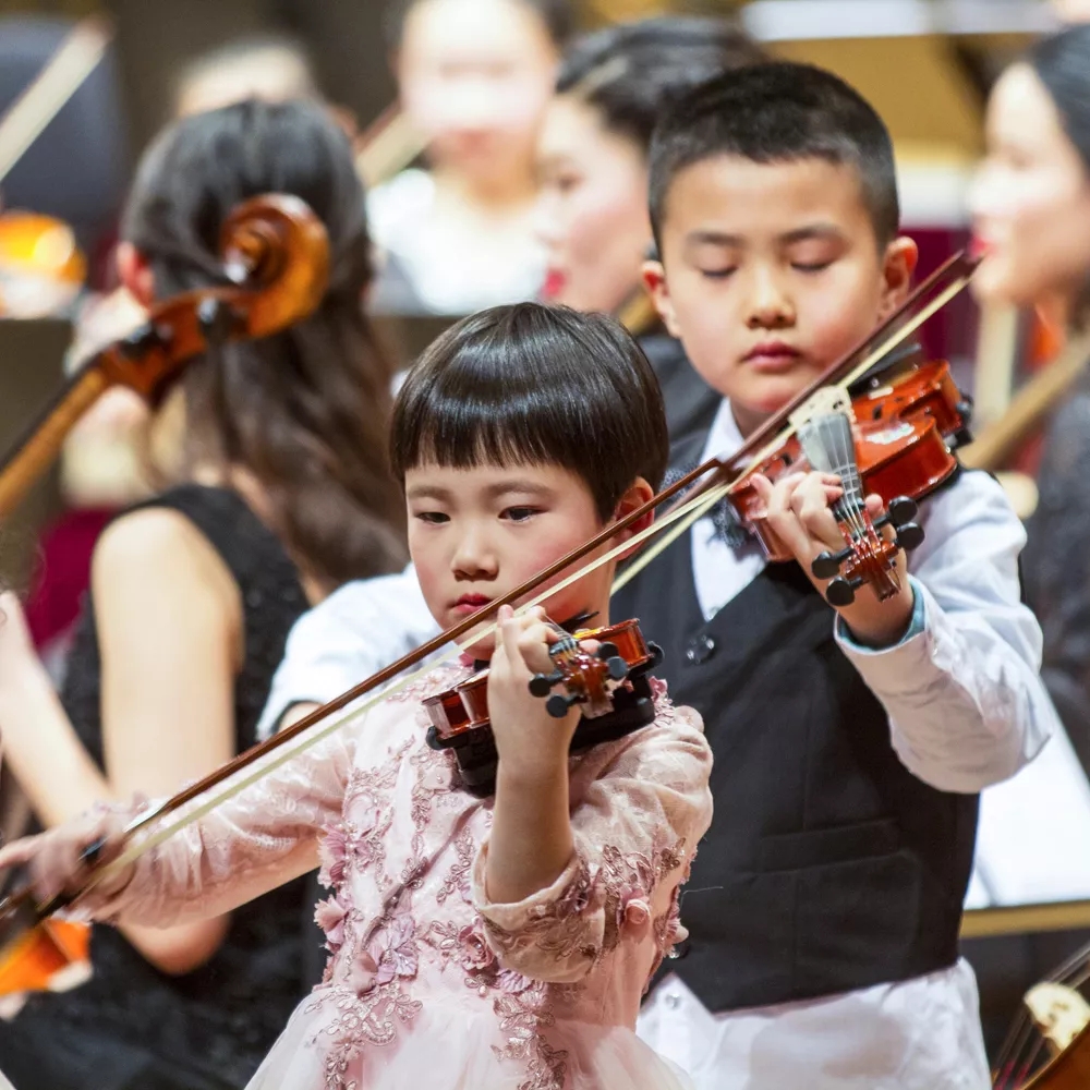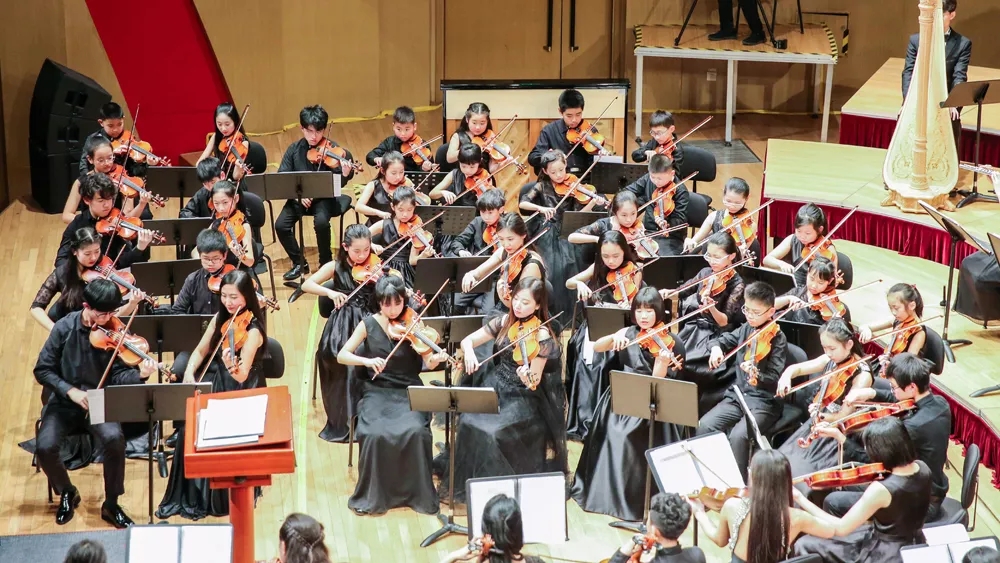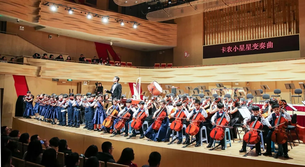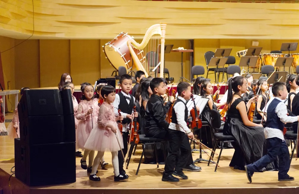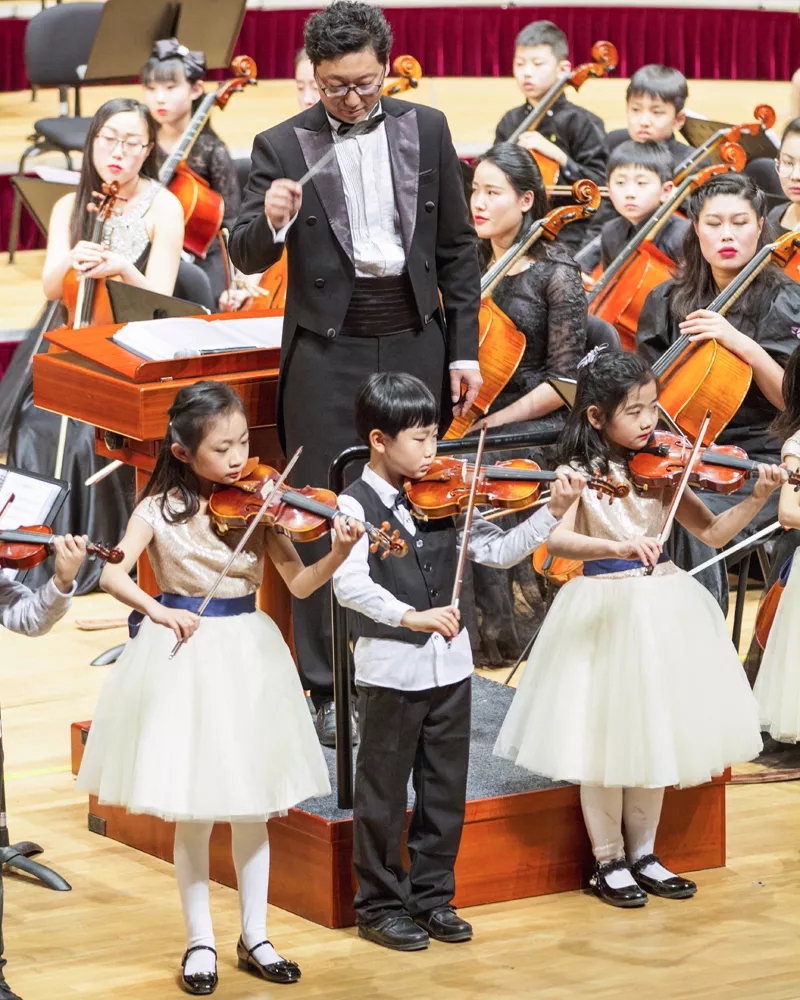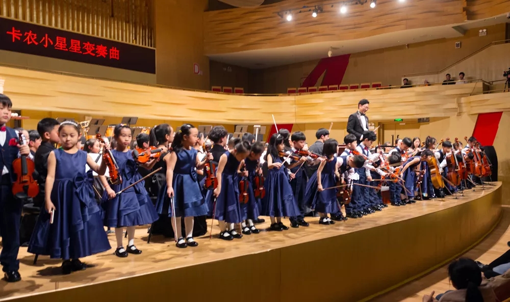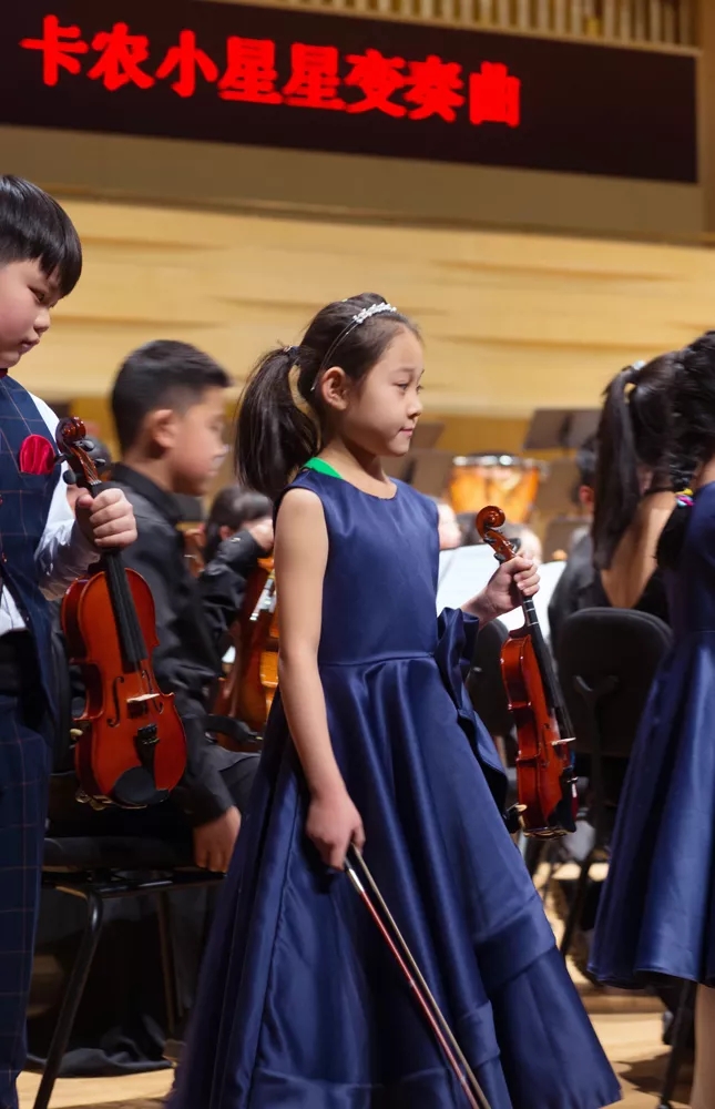 在今年音乐会中,有一个特别的小团体加入了我们,那就是文华小学弦乐团,这是我校课程输出的教学成果展示。登台的24名小演员以弦乐团的形式演奏《卡农小星星变奏曲》。