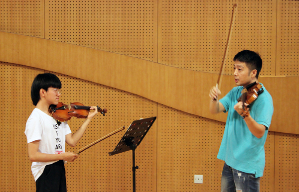 在这为期三天的活动中,爱乐天使的学员们过的紧张而充实。7月9日晚上爱乐天使的学员们非常幸运地参加了名校特邀评委卓品、栾奕老师的乐团指导课。7月10日小学员们则是全天都在进行紧张的香港国际音乐节潍坊地区初赛,比赛结束后7月11日上午在爱乐天使音乐厅校区进行了卓品、栾奕老师的一对一公开课…整个活动期间时间安排紧凑,不少学员还有家长都是全天参与,一个环节都不舍落下。很多家长用手机纷纷记录下孩子的参赛时刻,有的家长还带着笔记,在听课时认真归纳…接下来放出这几天的活动缩影,让我们共同回顾。
