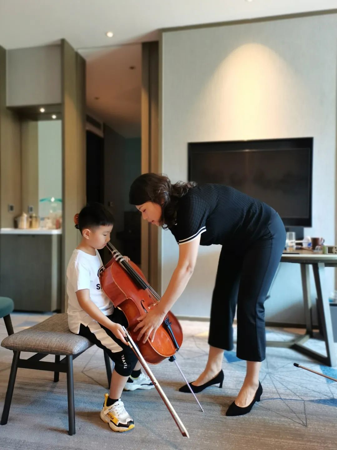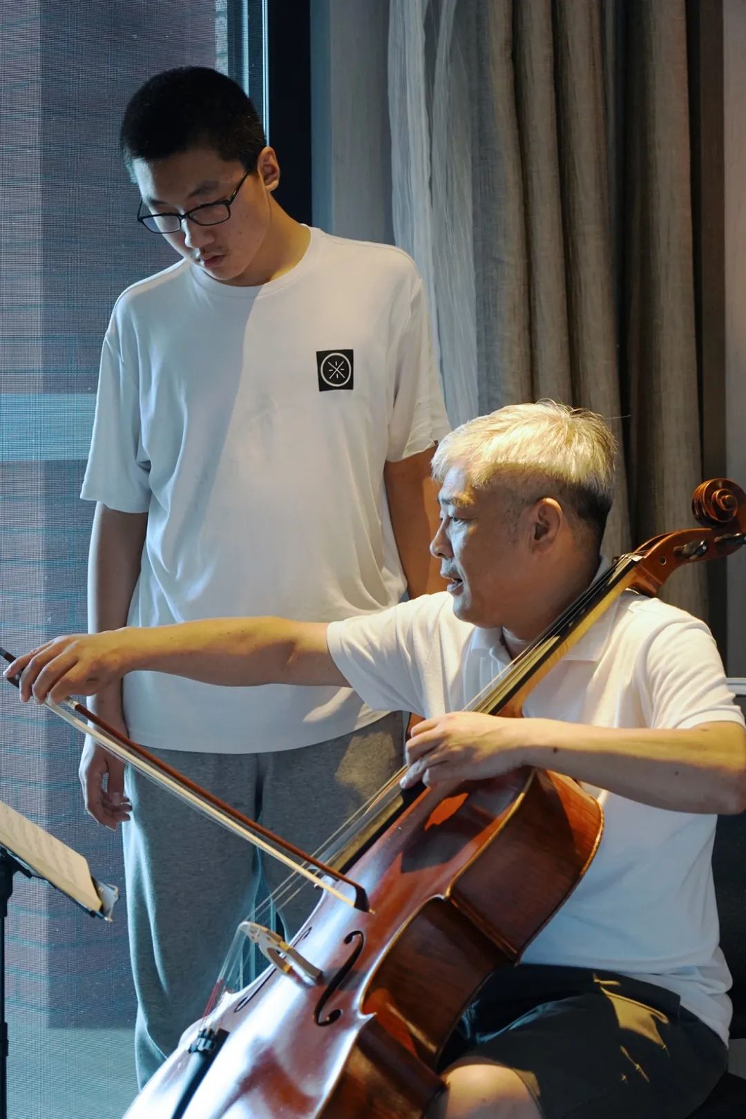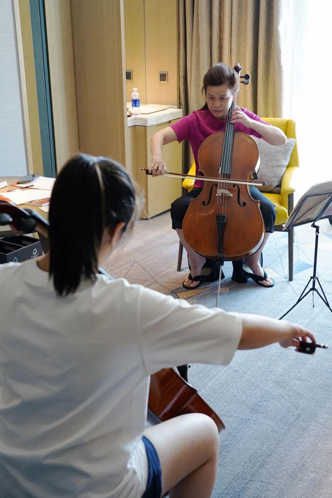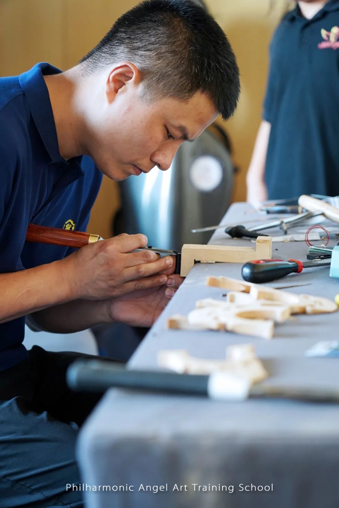 在此次参赛中,特别感谢制琴师郑老师配备全套工具与我校随行,时刻为我校的学员进行大提琴的养护与维修。让我们所有的学员和琴,始终处于最佳状态去应对紧张的学习和激烈的比赛。
