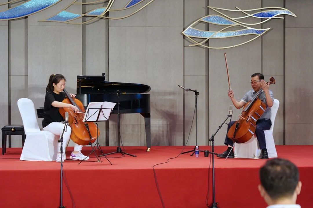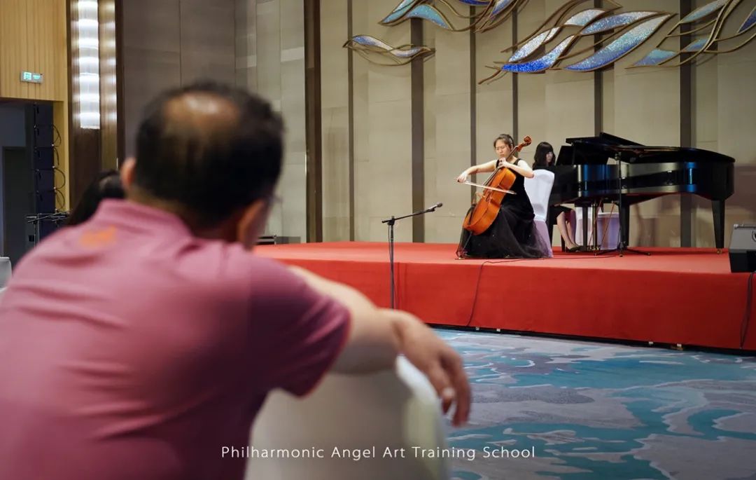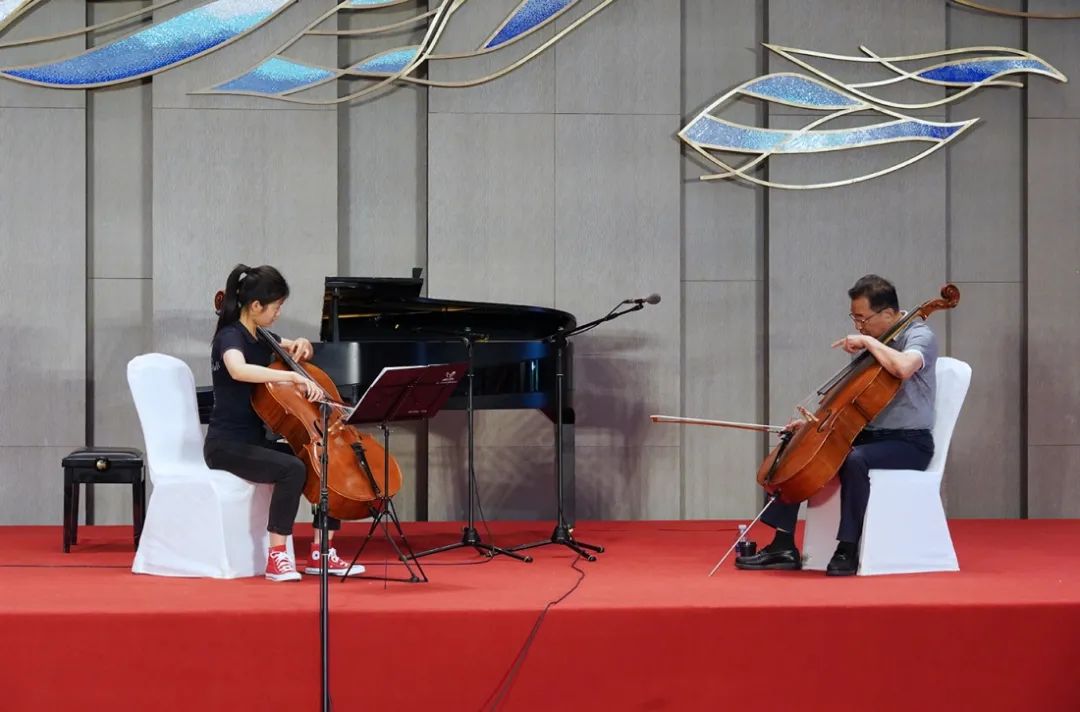 我校分别在7月21日的晚上和7月22日的中午进行了一场大提琴七重奏和嵇靖然、胡戈同学的个人独奏演出。