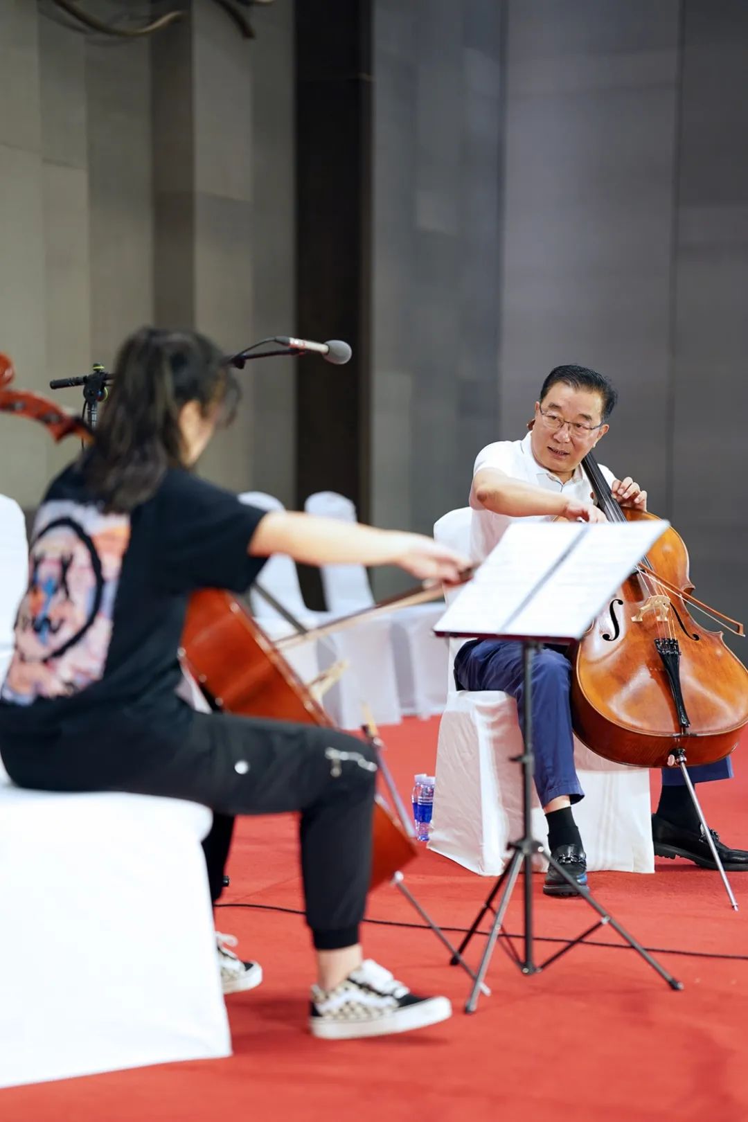 嵇靖然和胡戈同学的个人独奏演出是当场的最后压轴表演,且当场音乐会亦是整个活动最后的一场学生音乐会。俞明青老师也来到了现场,坐在前排看完她们的演出,并报以掌声和鼓励。