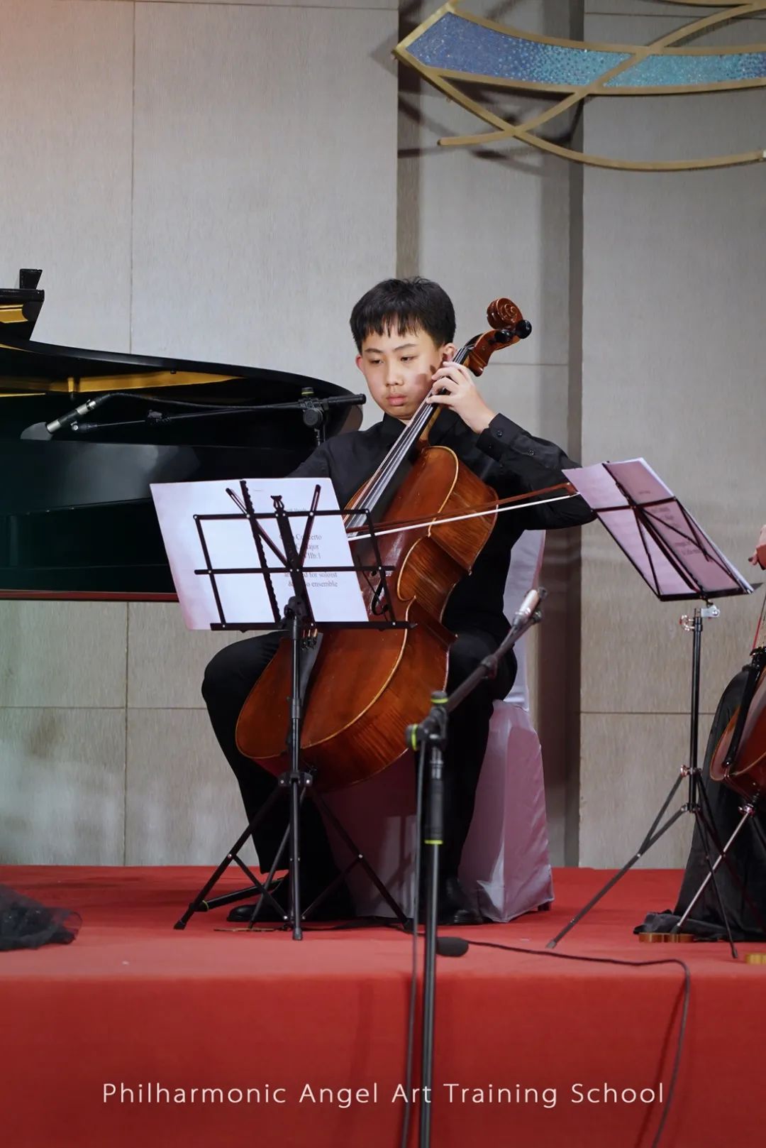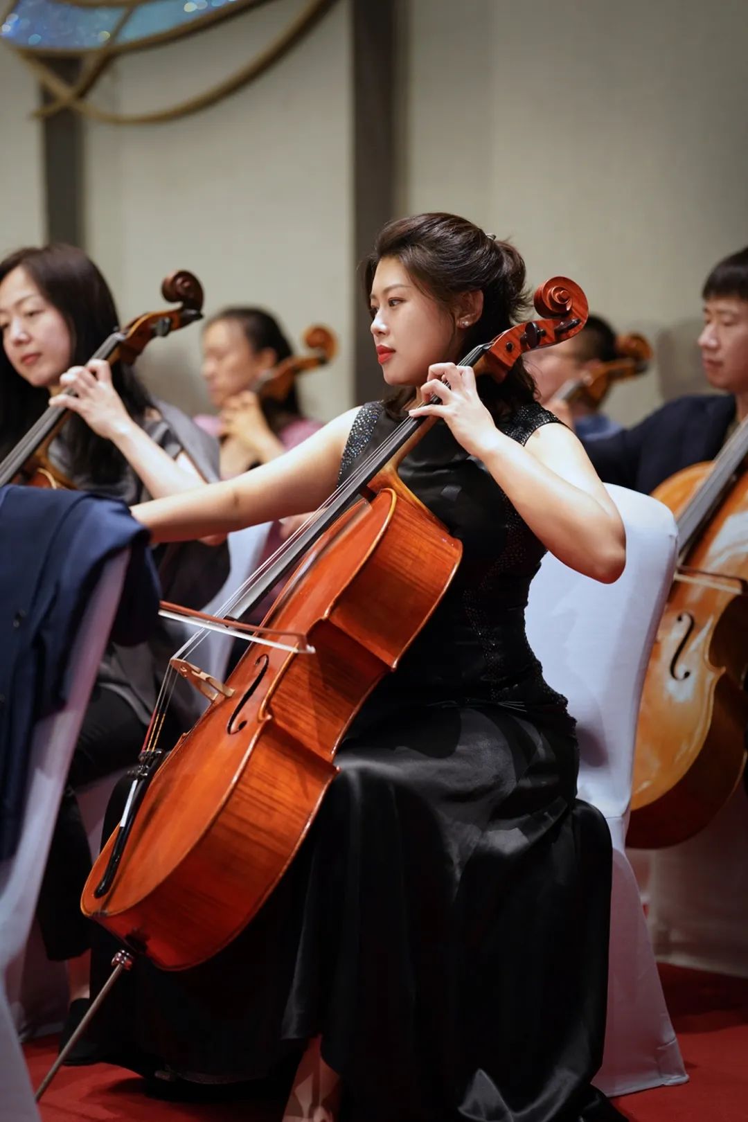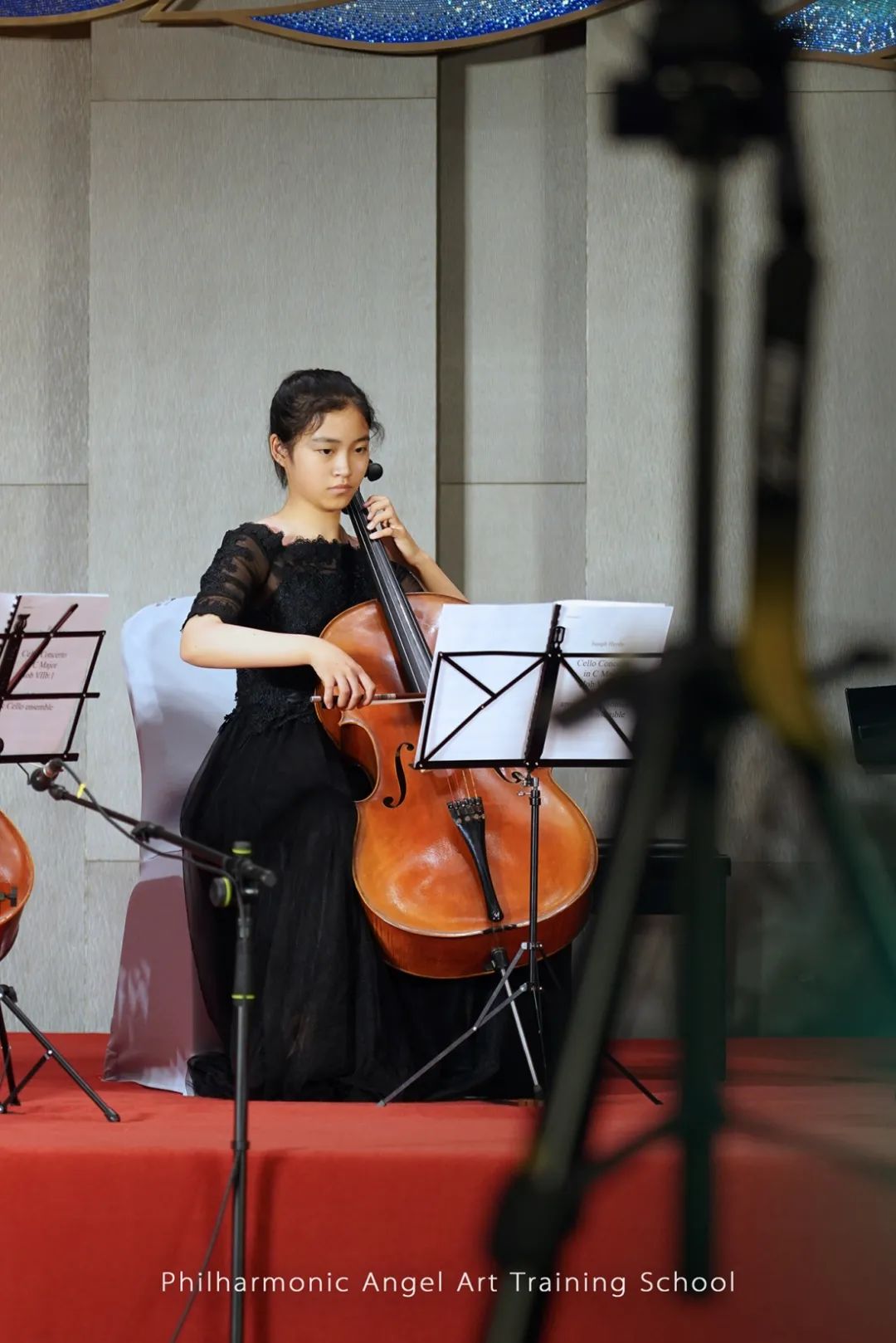 在最后的闭幕式之夜,整个大厅回响着大提琴大合奏那动听的声音,无人机在大厅之内航拍,记录下了这大提琴盛事的振奋时刻。