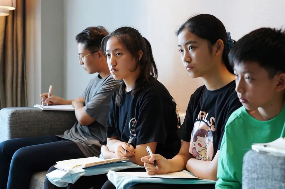 每天在早餐结束后,带队老师都会组织所有孩子进行早会,再次确认每个学生课程的时间段及跟课人员,强调前一天遇到的问题和要调整注意的地方。每位同学都是带着纸笔手机同步记录今天要做的事情和流程时间段。