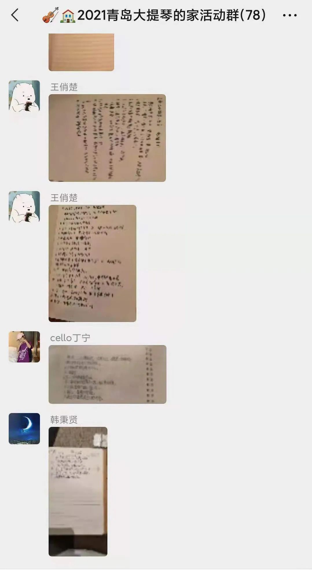 每天随堂听课的笔记,都要在晚间规定时间之前发到群里与大家分享,带队老师们也会一一查看孩子们听课的心得。