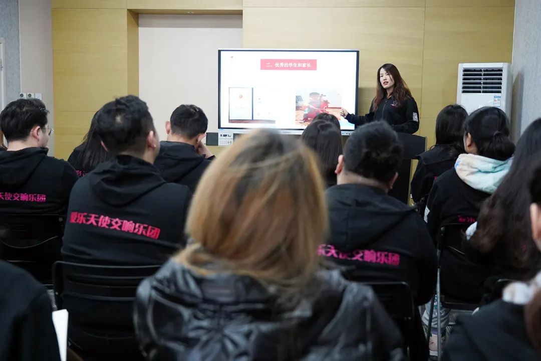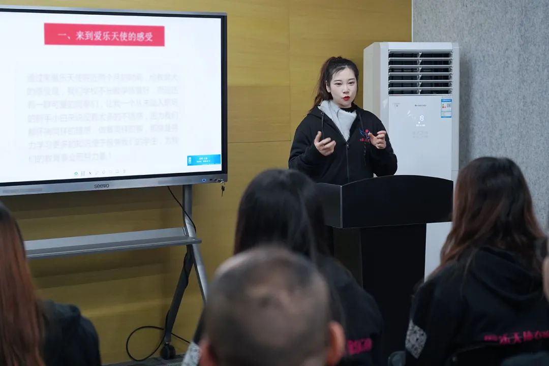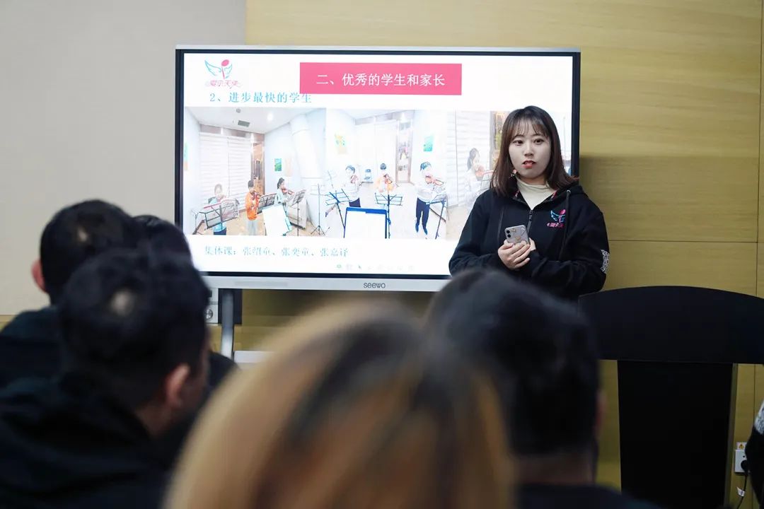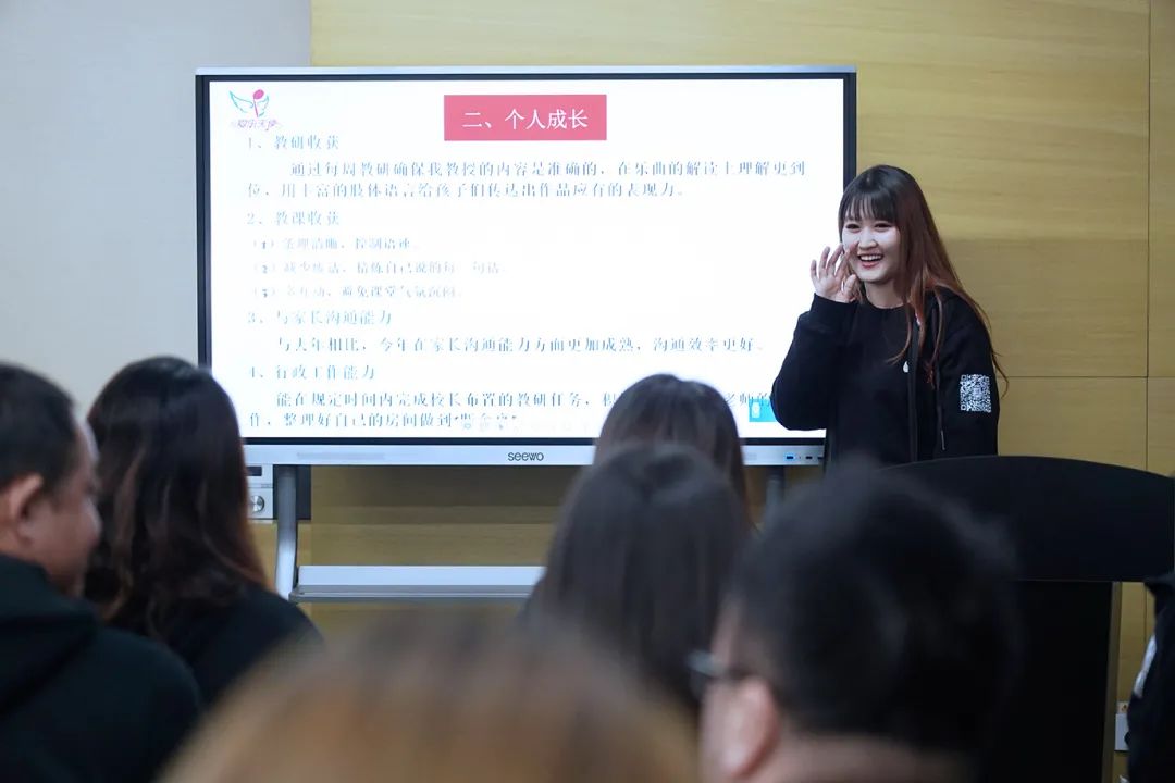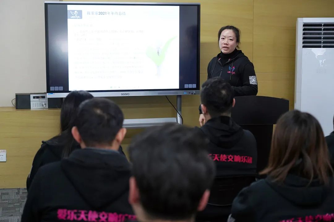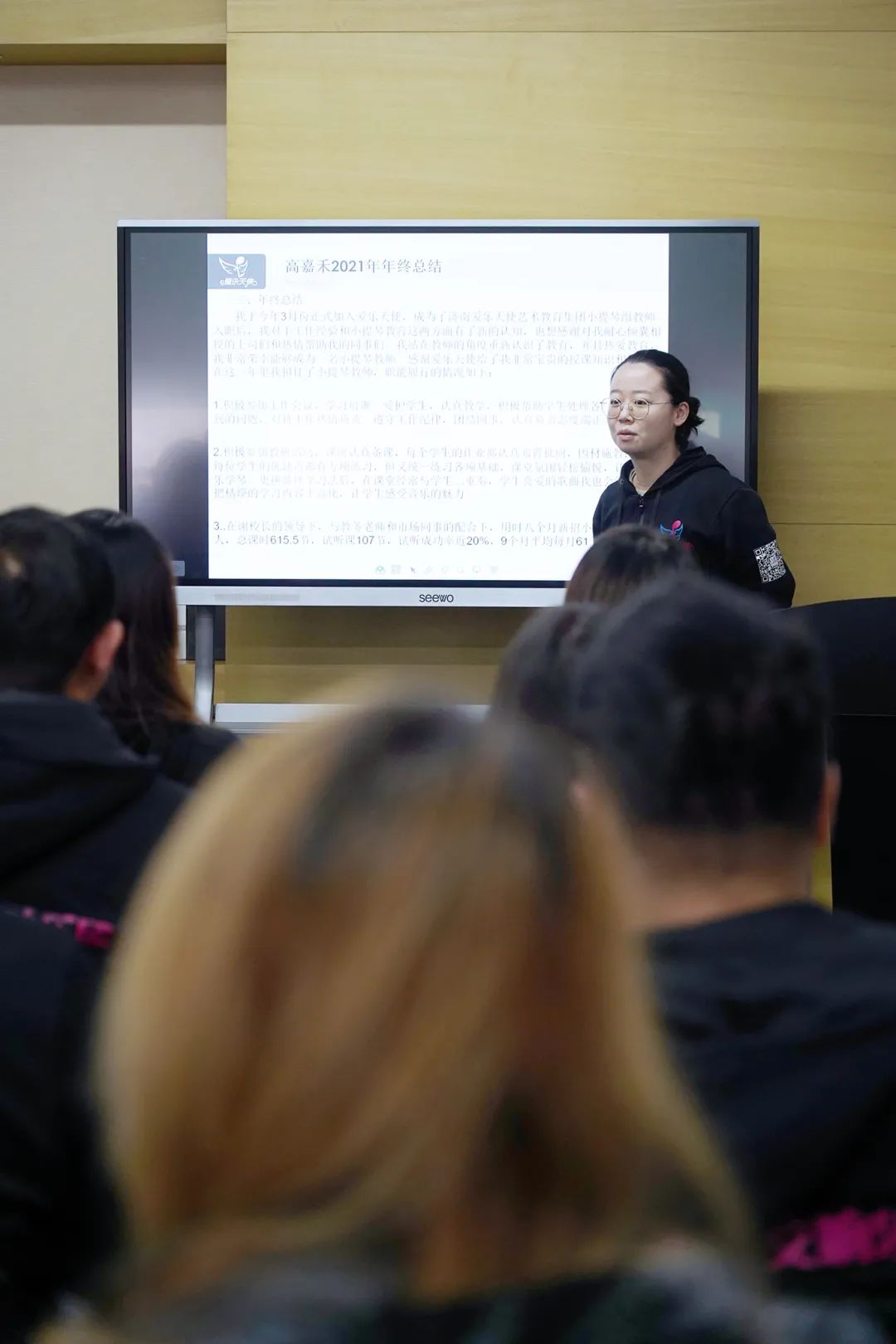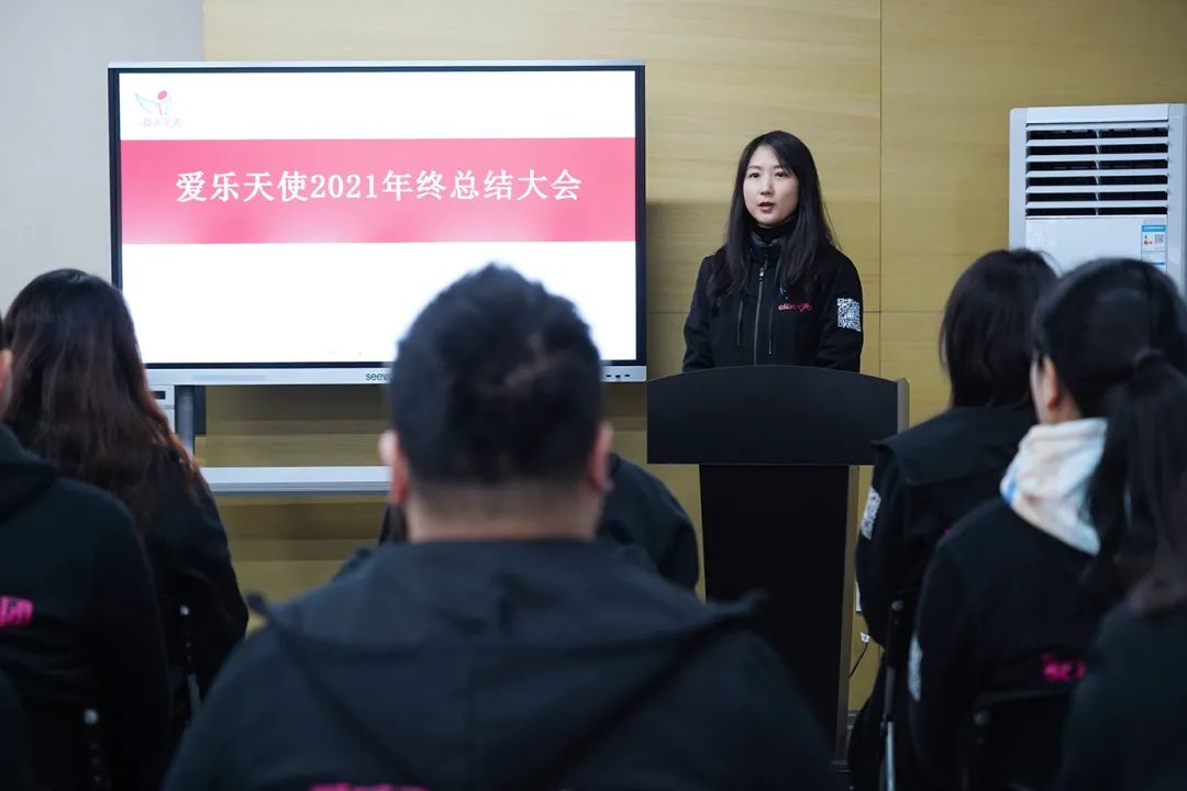 爱乐天使王梦珊校长在总结开始前,进行了开场发言。王校长用简短的开场白,回顾了2020年同样在这里做总结的场景,期待着接下来每位老师登台时,是如何解读自己从去年到今年的努力,如何实现自己去年时曾对自己提出的期许。