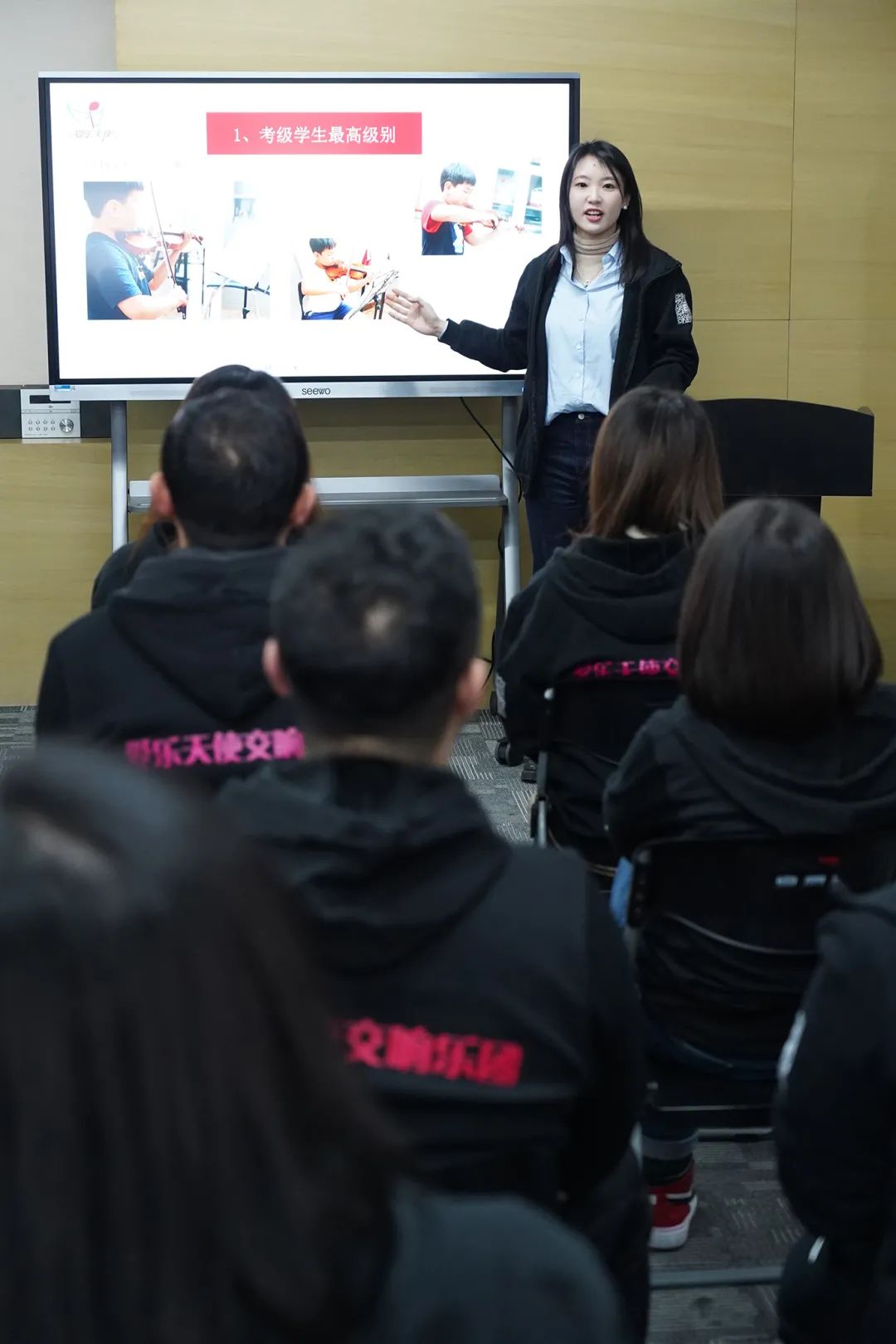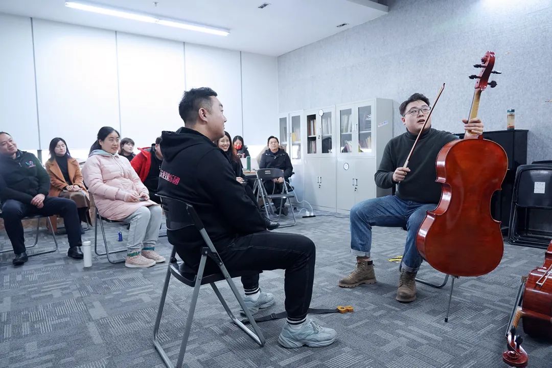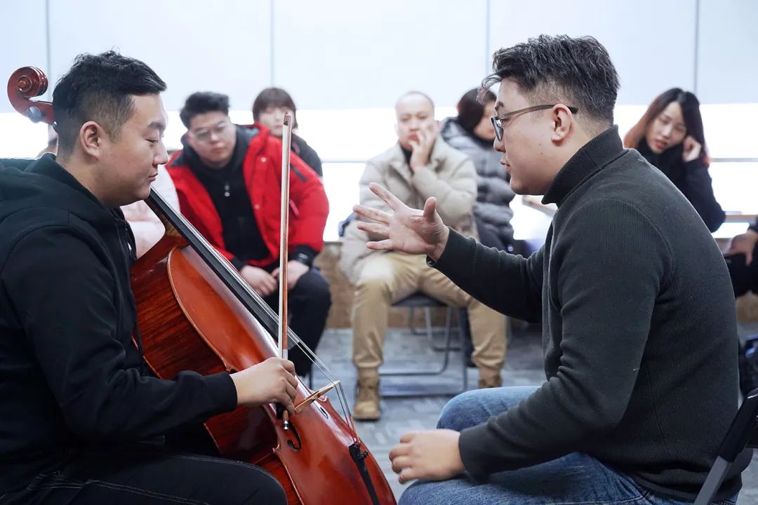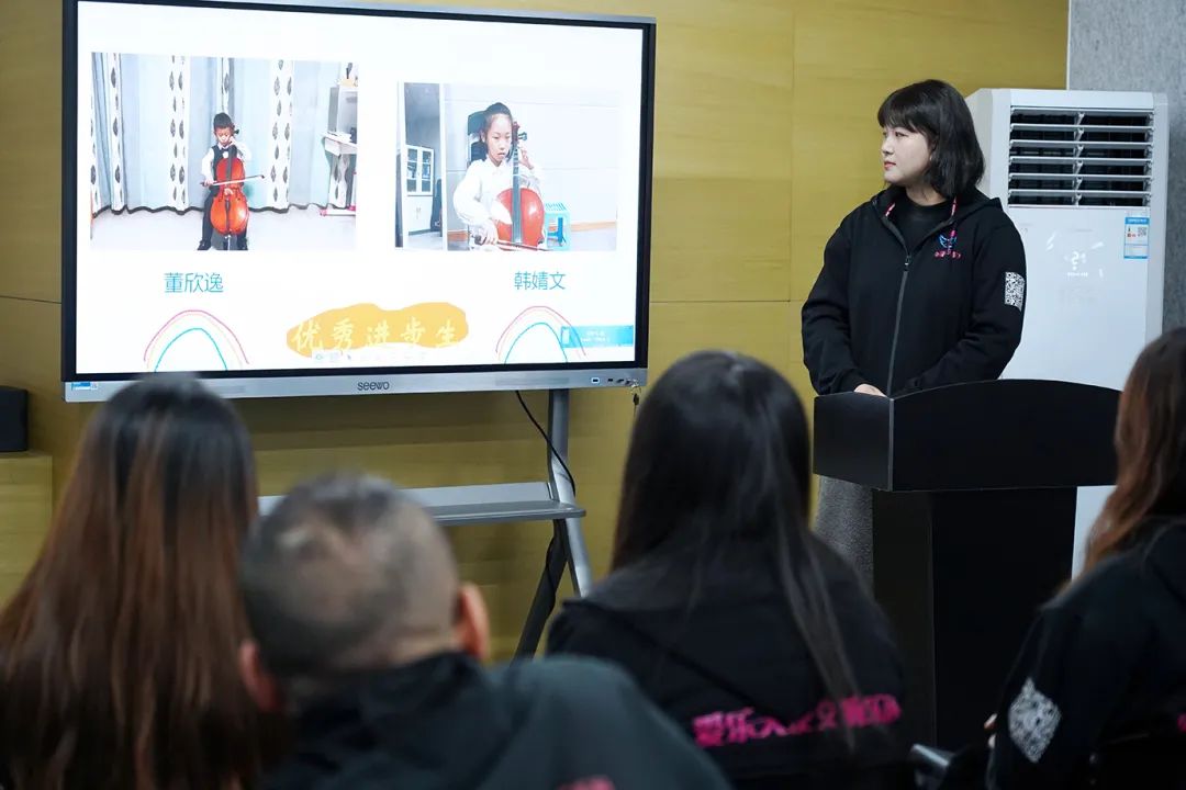 潍坊校区和济南校区的专业老师,分成小提琴和大提琴两个专场,分头进行课堂模拟,交流教学技巧与心得。行政老师随堂参与,感受实际课堂中学员和家长及老师三方互动交流的场景,更好的理解教学,在后期工作中更好地辅助家校沟通。