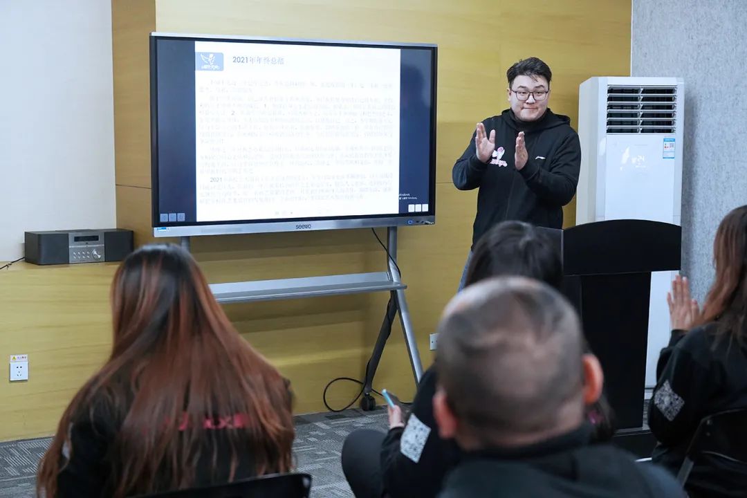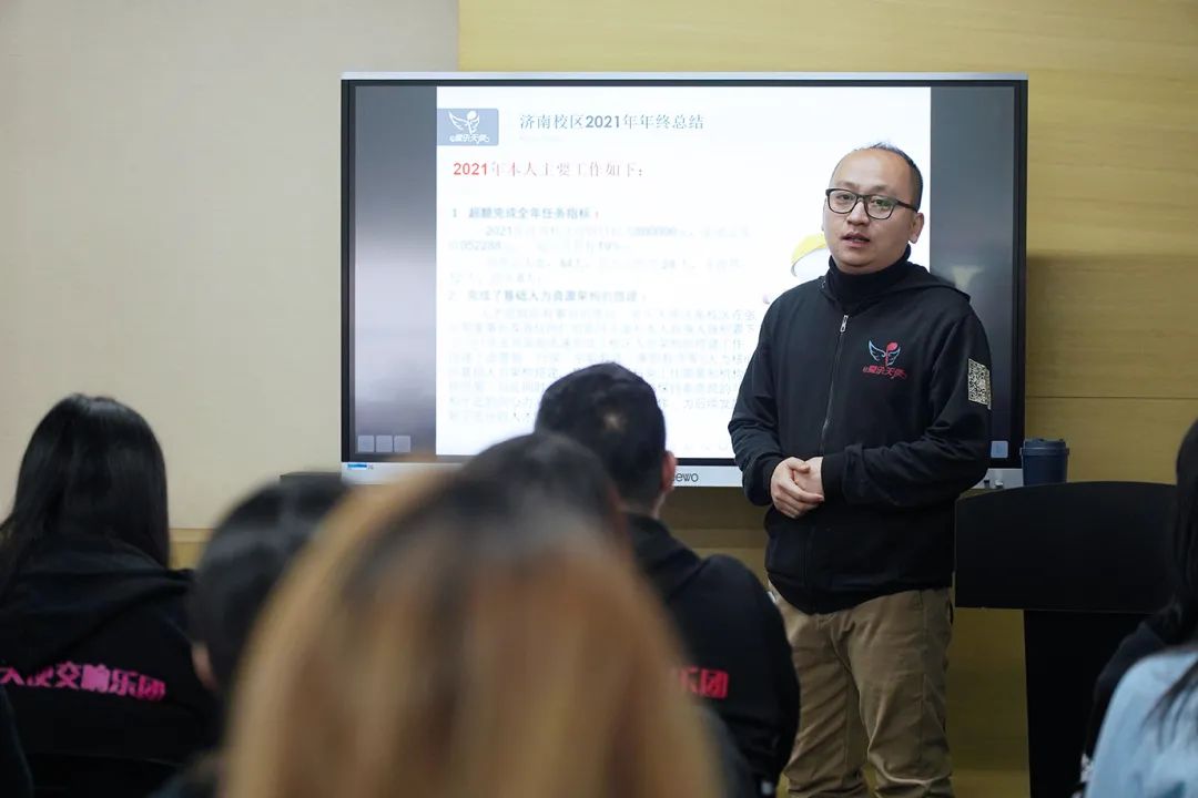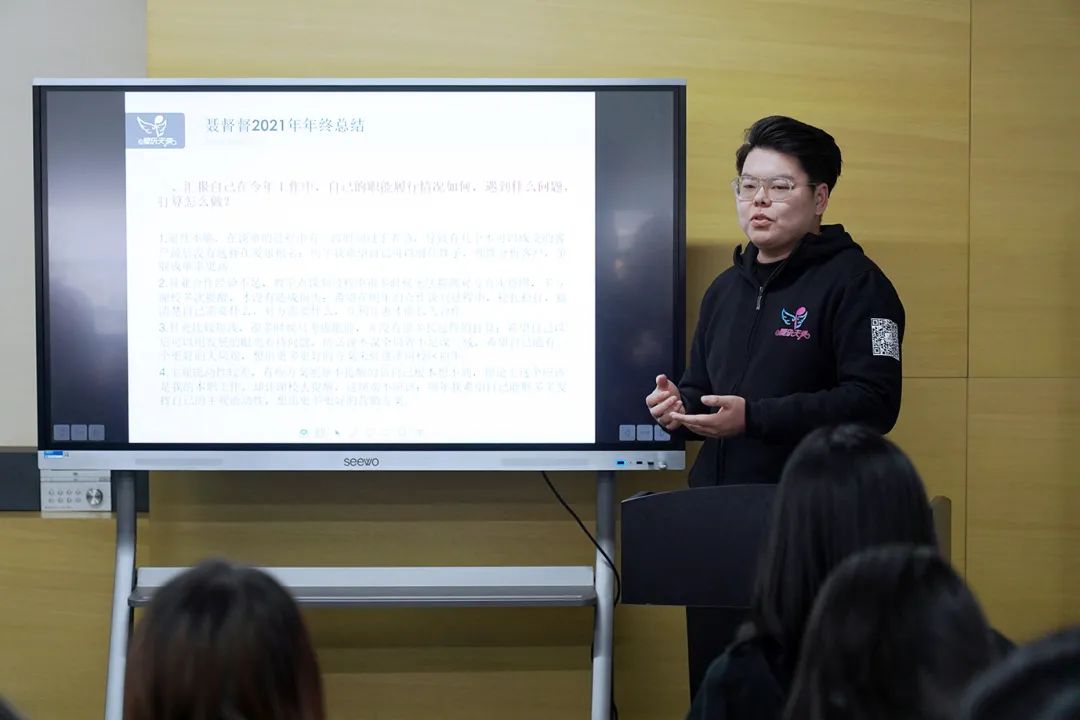 在整个2021年终总结的最后,张文慧校长上台对整个活动进行了收尾发言。他简介的点评了老师们的总结汇报,并对学校整体在过去一年的发展进行了肯定的评价,也对接下来的一年提出了新的期许。