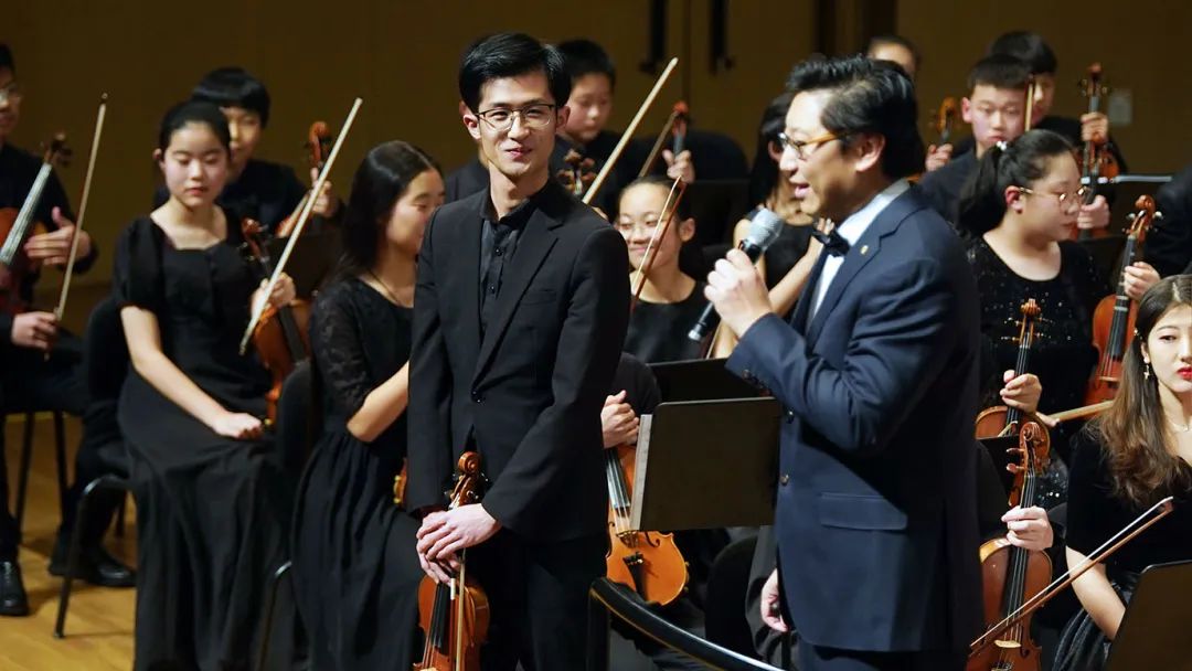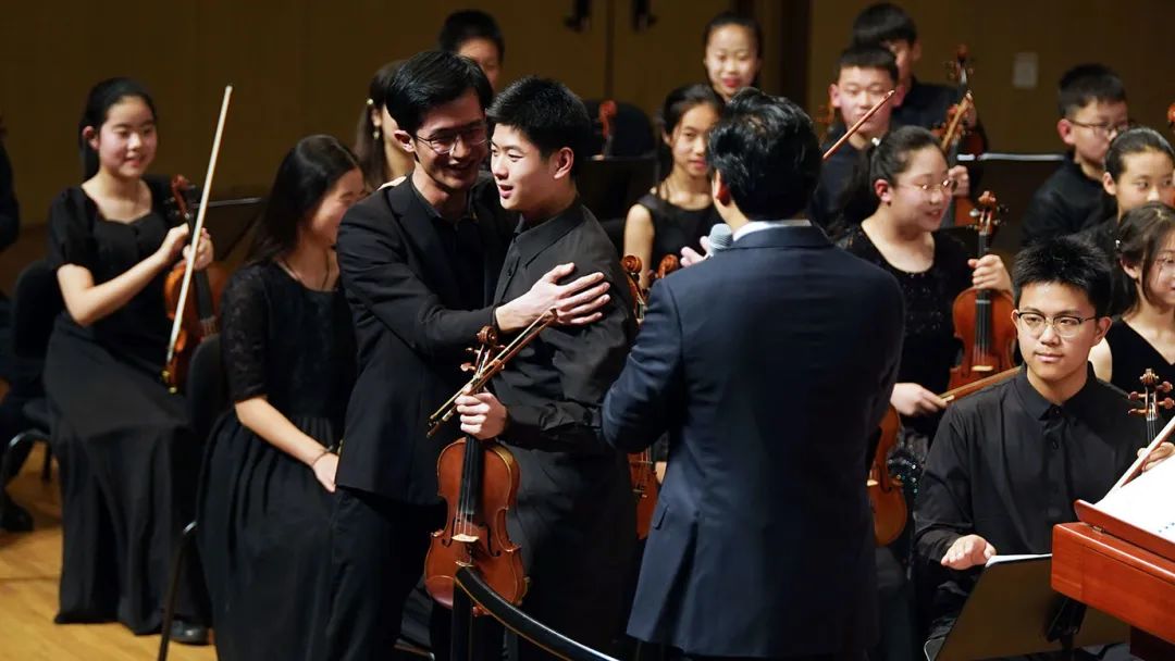 赵雨辰同学是爱乐天使艺术学校成立青少年交响乐团以来的第一任首席,现在即将从浙江音乐学院毕业,奔赴丹麦皇家音乐学院攻读硕士学位。这次音乐会,他将乐团首席的位置传递给了周士耀同学。