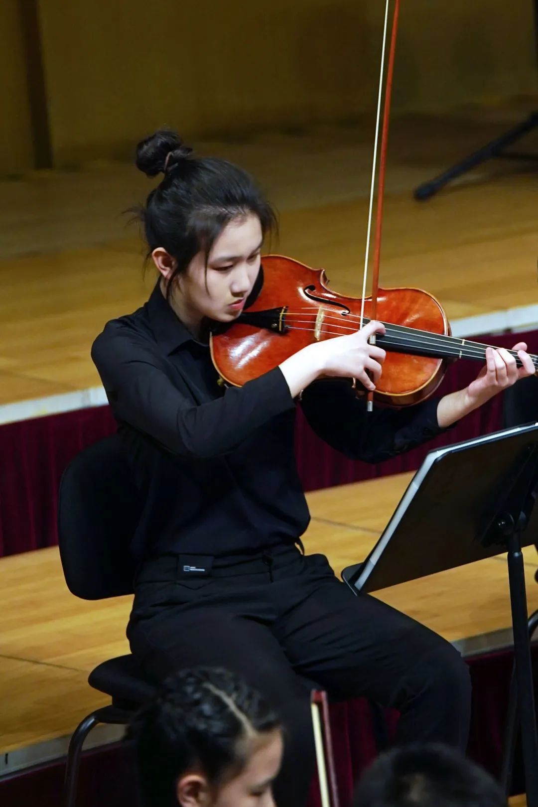 在演奏《春》第一乐章这首曲目时,作为小提琴独奏的赵雨辰同学站在台前展现了完美的演出。《春》第一乐章结束时,在张文慧校长的主持和所有观众见证中,进行了爱乐天使青少年交响乐团的首席交接仪式。