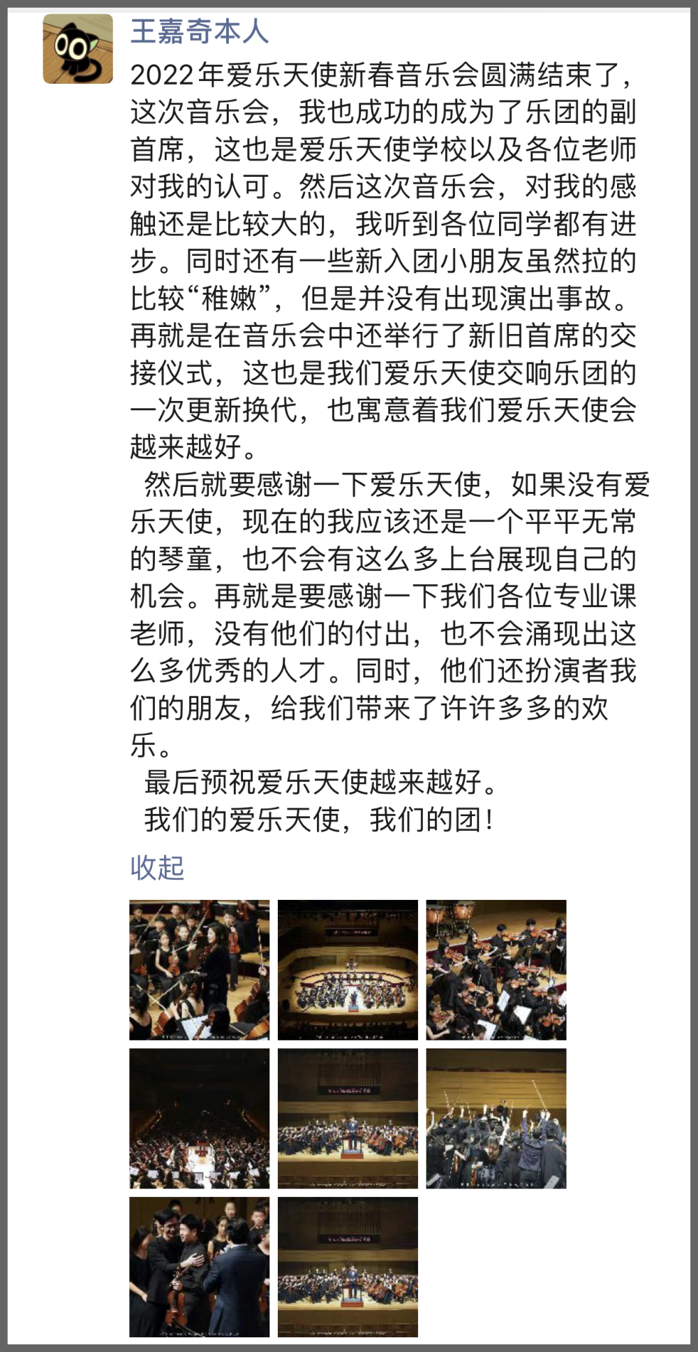 也许有天所有参与到这个集体的同学都会被记录在册,他们的图片、声音和影像都将成为珍贵的资料,让后来的同学们知道师哥师姐们的过往,把优秀当做一种爱乐天使的文化传承,以严格要求自己来继续这种传承。这是爱乐天使精神!