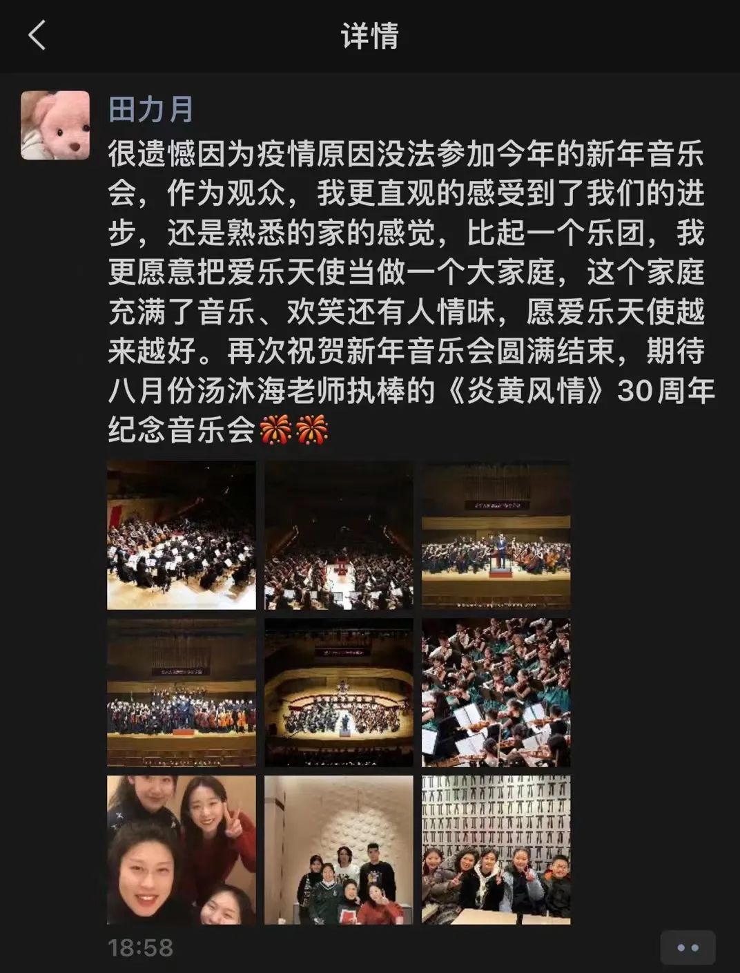 此次音乐会原定为《炎黄风情》首演三十周年纪念暨爱乐天使2022新春音乐会,国际著名华人指挥家汤沐海先生将会亲临潍坊指挥乐团演出,《炎黄风情》的作者鲍元恺先生、以及国内众多音乐家都计划到场观看演出。但随着疫情发展,防疫形势出现了变化,在与潍坊大剧院协商后,我们决定请省外的音乐家们暂不来潍,将此次汤沐海先生指挥的《炎黄风情》纪念音乐会后延期到八月举行。
