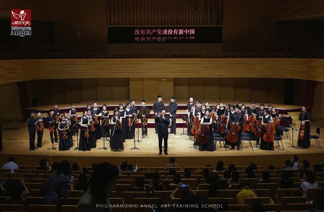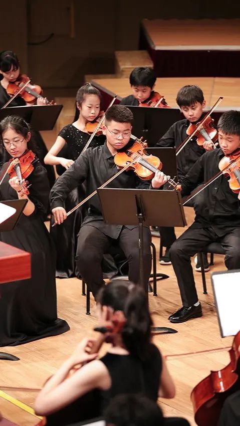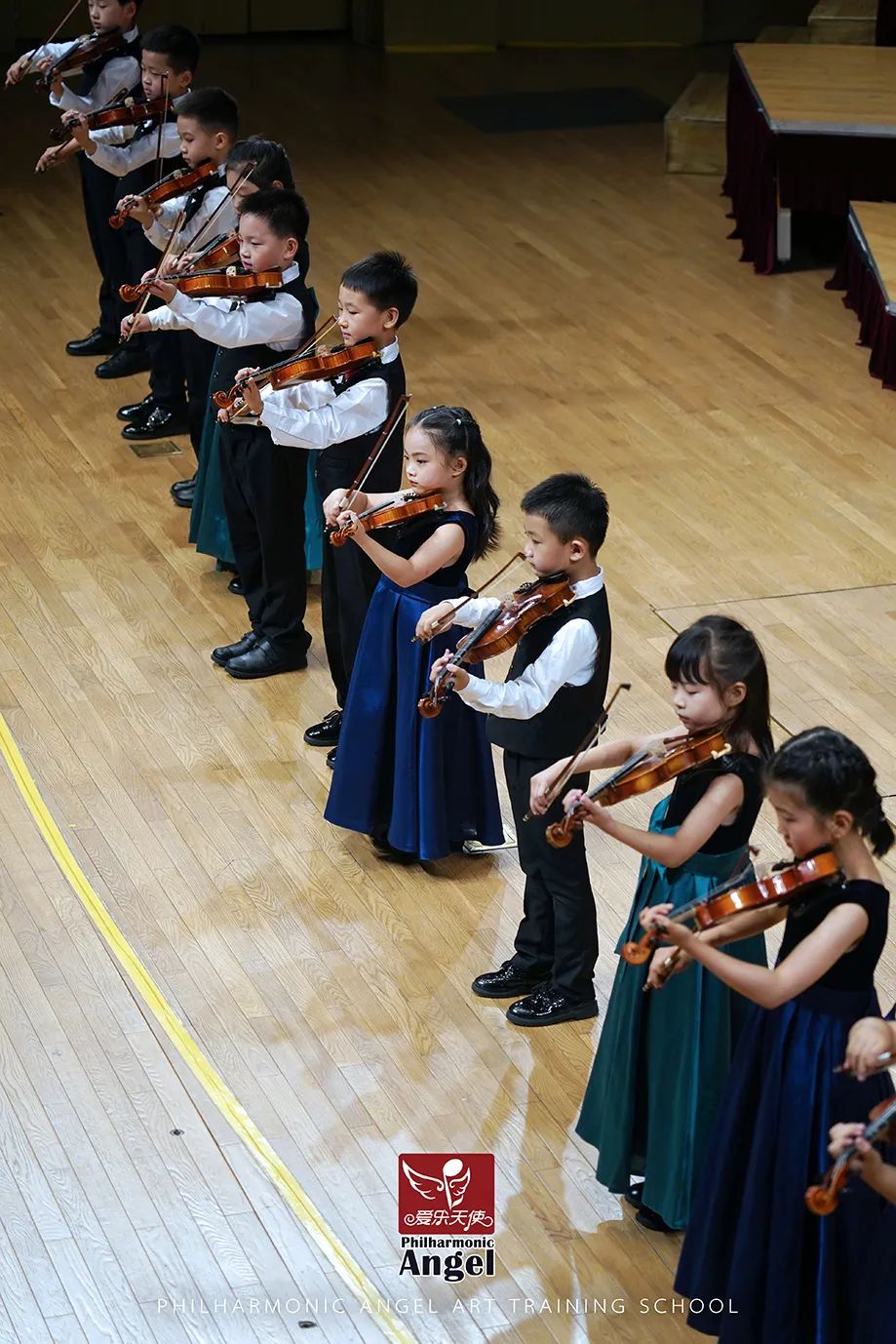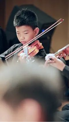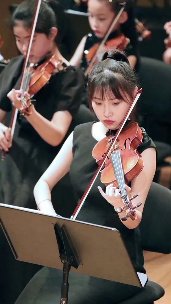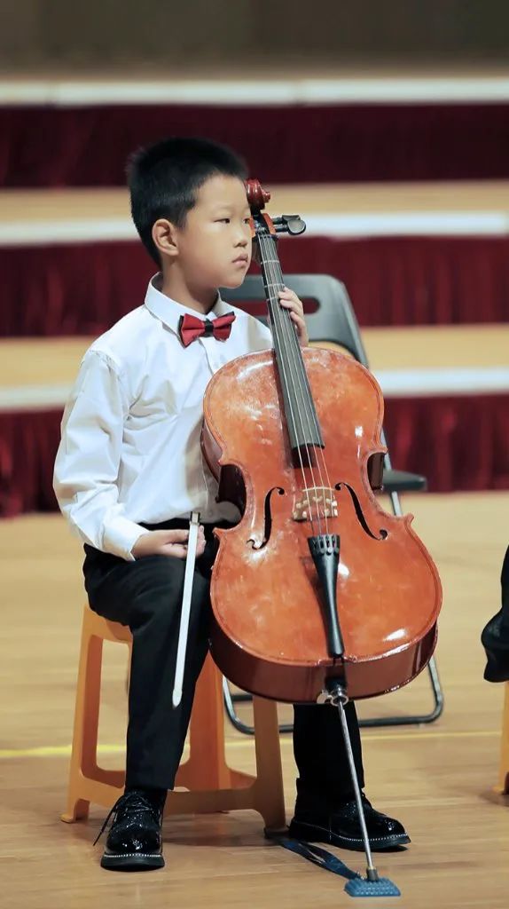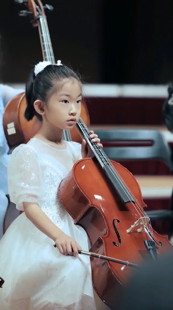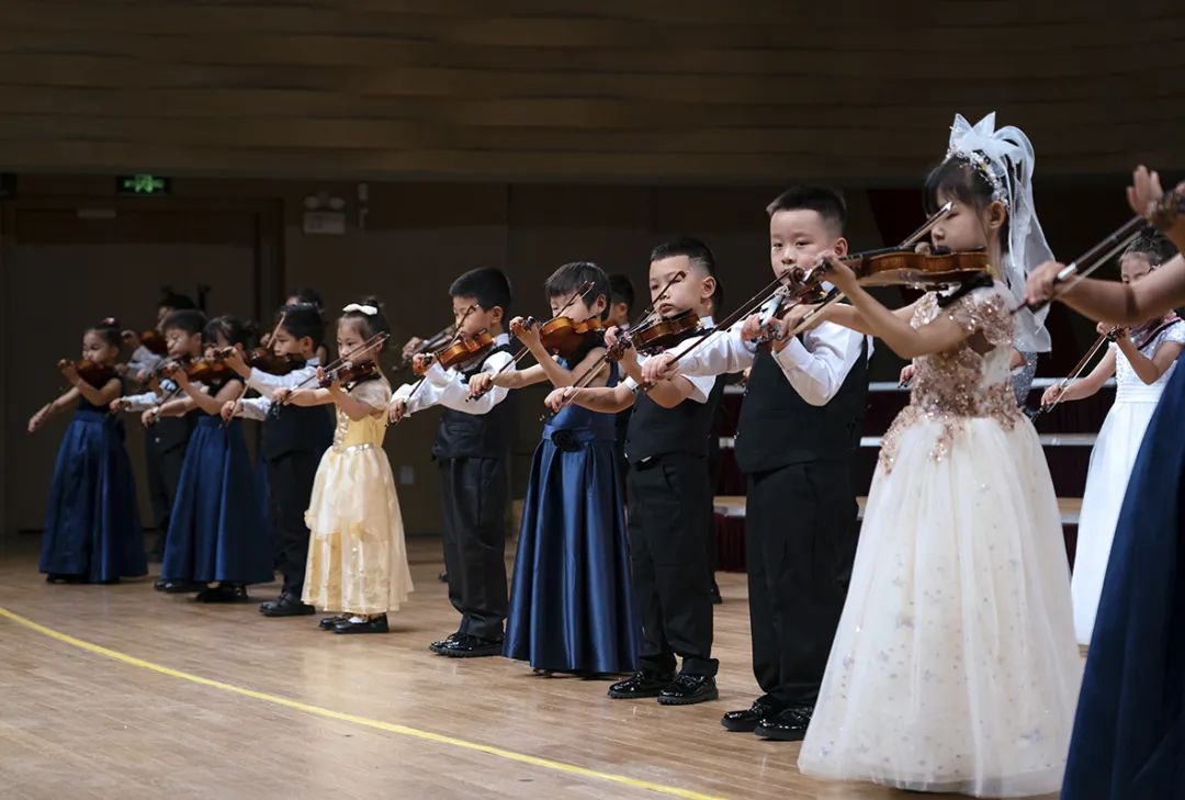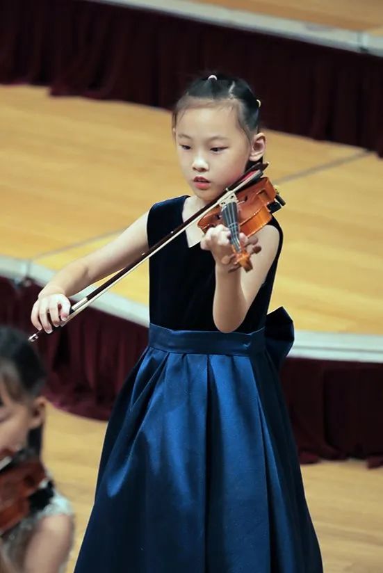 相较于前两个节目的演员小龄化,第三个节目的学员就稍微大了那么一点点,以小学生居多了。这支队伍的学员大多参与过2022年的爱乐天使新春音乐会,有过一些舞台的演奏经验。他们登台后迅速的找到自己的位置,在伴奏响起时齐齐地架琴开始演奏,作为之前登台小朋友们的学长,这队学员们的的音色也较之前的小龄学员们有明显的提升。