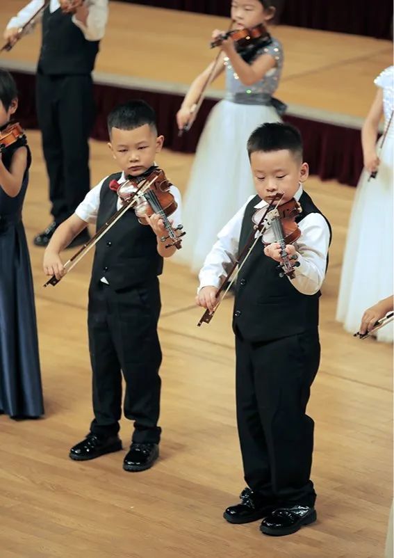 此次演出的第二个节目,是由25把小提琴齐奏的曲目表演。这个节目的队伍中,仍然有许多小朋友是第一次登台,只有在临开场前才有了不到10分钟的走台时间来熟悉自己的站位,但在这次演出中,让大家印象深刻的不仅有他们这个年龄的稚嫩与可爱,让观众感受到了他们那份对音乐的喜爱。曲目虽然简单,但琴声仍然让人感动。