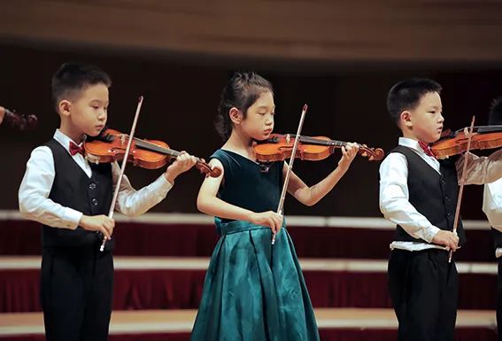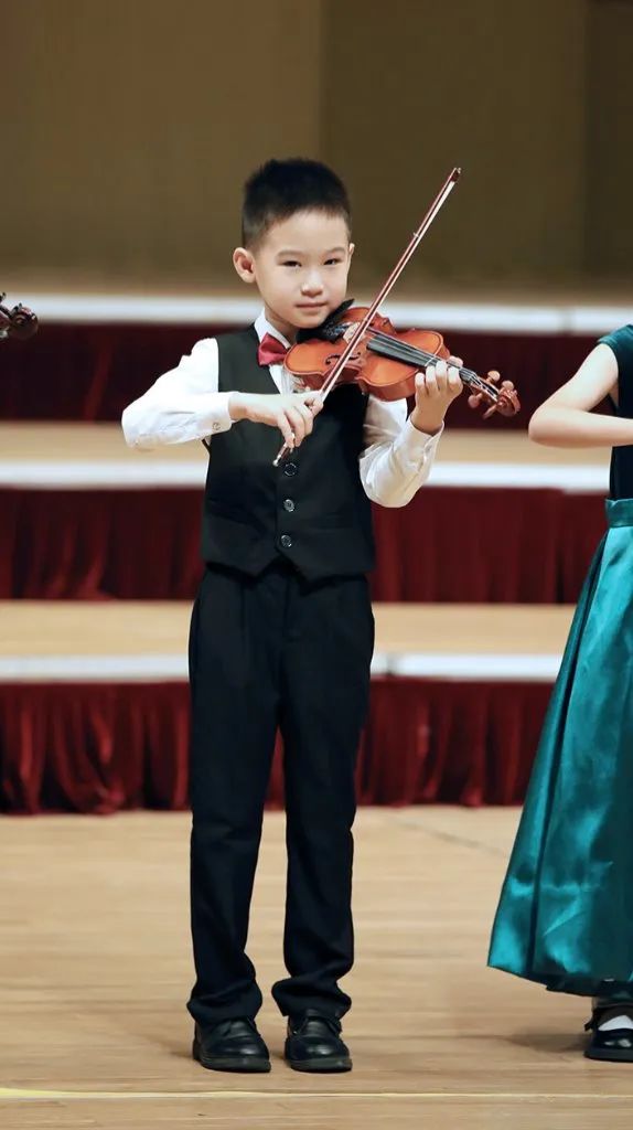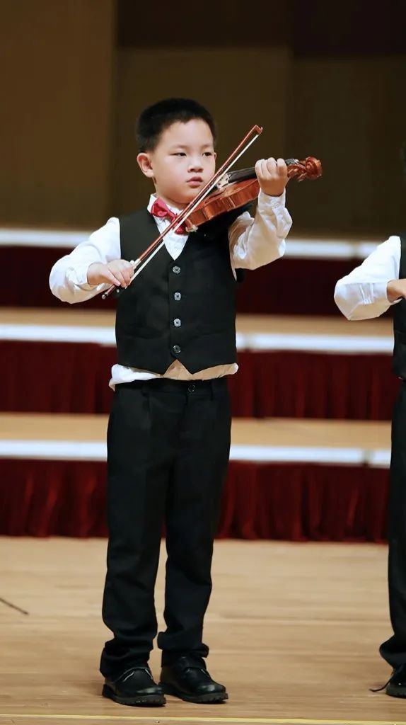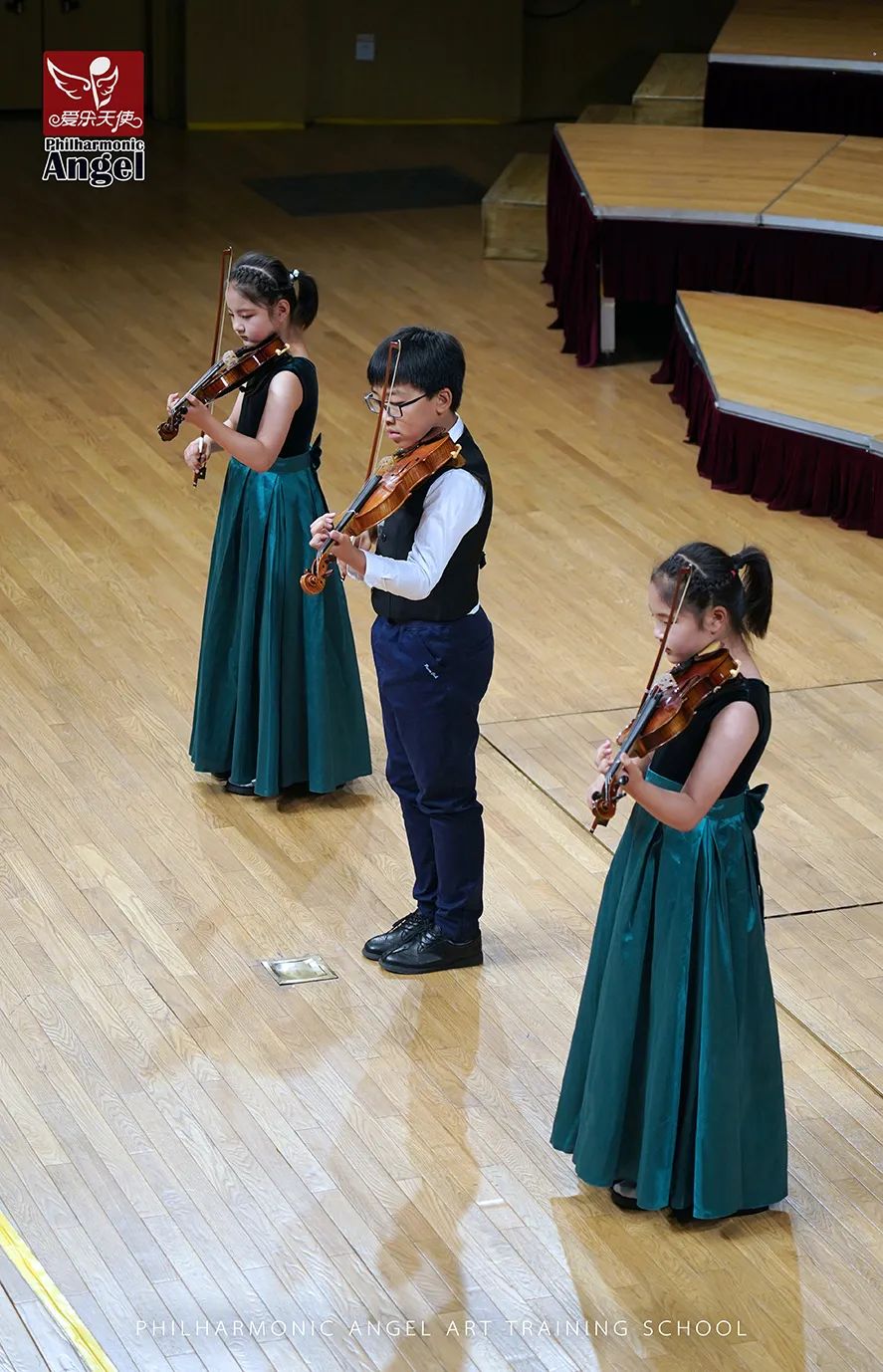 上午场的演出中,有一个节目的成员比较特殊。这个节目共有3名学员登台演奏,而这个节目的学员出自于我校的小组课课堂。小组课,是由年龄和水平相近的学员组合而成的,是我校课堂一种重要的组织形式。在小朋友学习小提琴的不同阶段时期,有时通过这种班级的组织形式,能更好的激发孩子兴趣,调动学琴练琴的积极性,也为学员更好的融入乐团奠定了良好的基础。