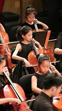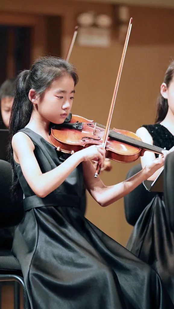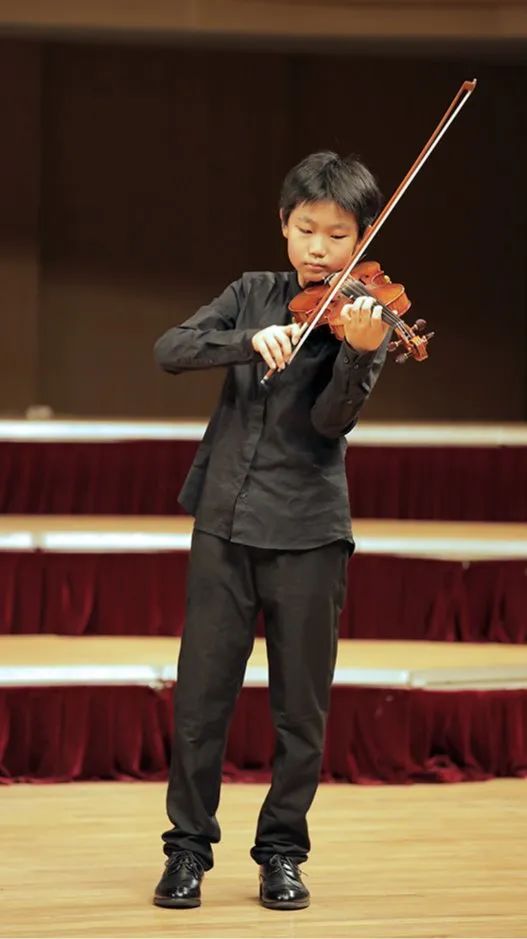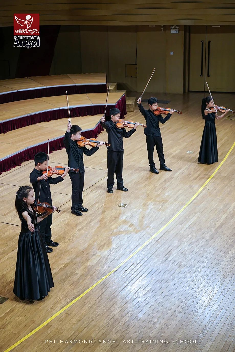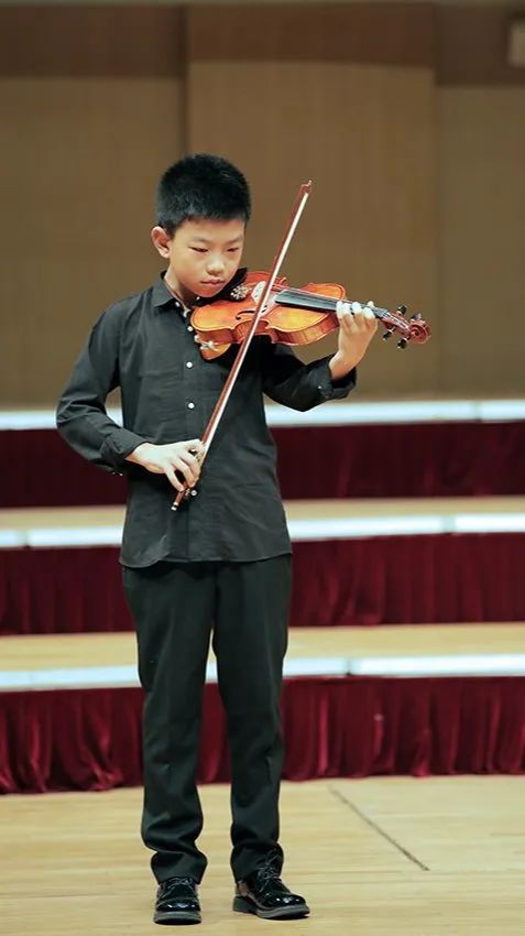3人小组的节目之后,是6位年龄稍长的学员登台亮相,他们一身黑衣也表明了他们已是爱乐天使A团成员的身份。这几位学员目前大多在小学5-6年级,学琴亦有数年的时间了,在大型比赛和演出中登台次数最少的也已不下10次。熟练的技艺、良好的心理素质和丰富的演出经验让台上的他们看起来光彩熠熠,许多家长拿起手机,记录下这组精彩的演出。