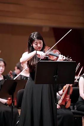 在下午场中,除了弦乐团的重奏。还有两首独奏曲目非常精彩。其中小提琴的独奏曲目是《西西里安舞曲》,由姜子祺同学演奏。姜子祺同学自幼在爱乐天使学琴,今年刚刚以专业和笔试双双第一的成绩成功考上研究生,是爱乐天使学员们的“大师姐”。姜子祺演奏的《西西里安舞曲》速度徐缓、柔和婉转,将曲子的优美意境生动地表达了出来。