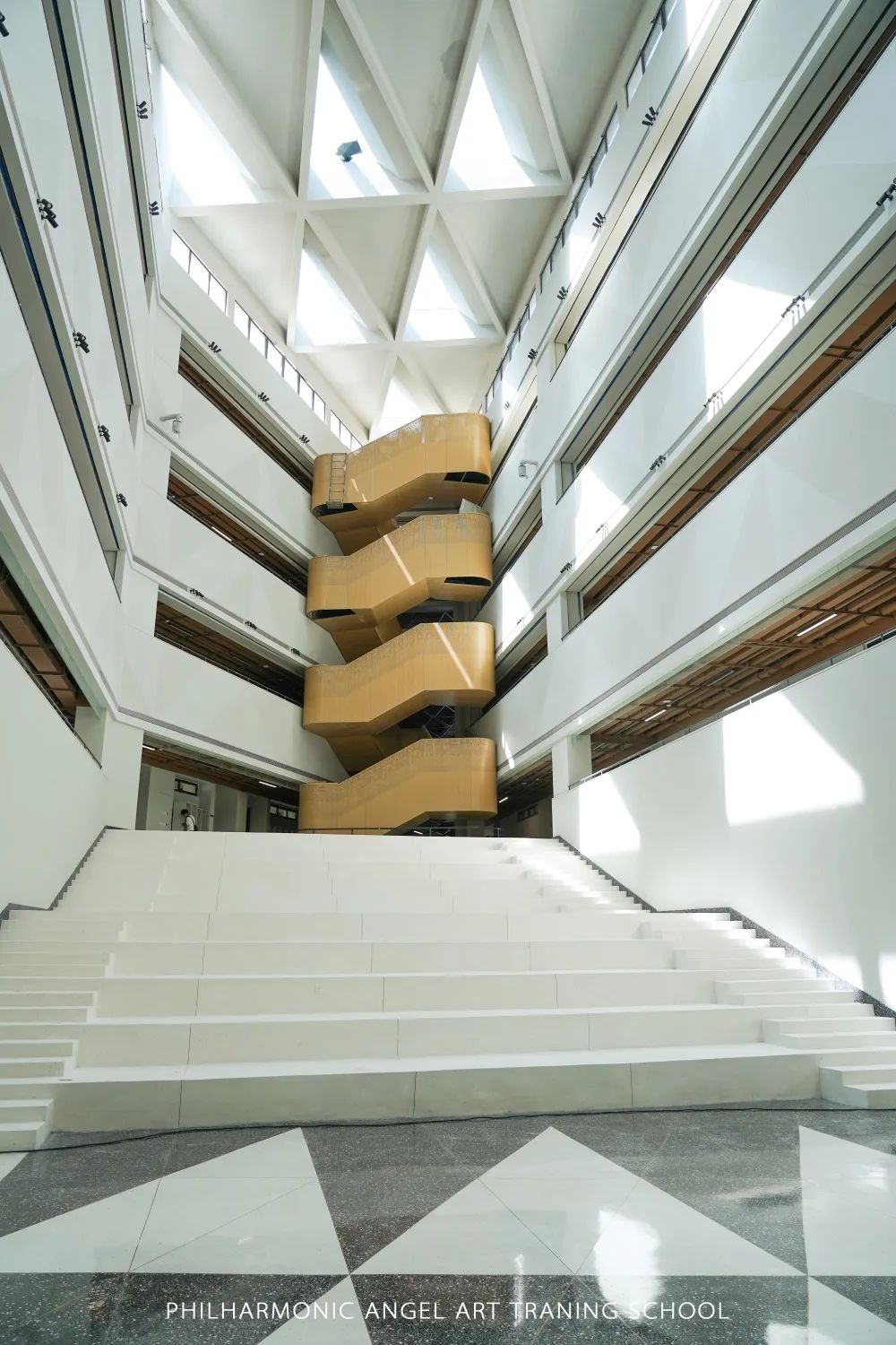 经过犹如音乐般律动的旋转楼梯,我们来到了这栋建筑中最核心的梅纽因音乐厅中,它是由世界级声学大师丰田泰久亲自操刀设计,专业的声学地板以及专业声学墙板和涂层,都是为了达到自然声演以及完美的声学效果。