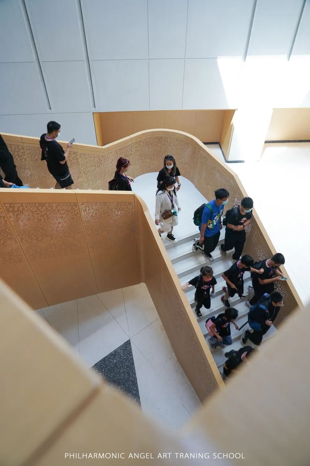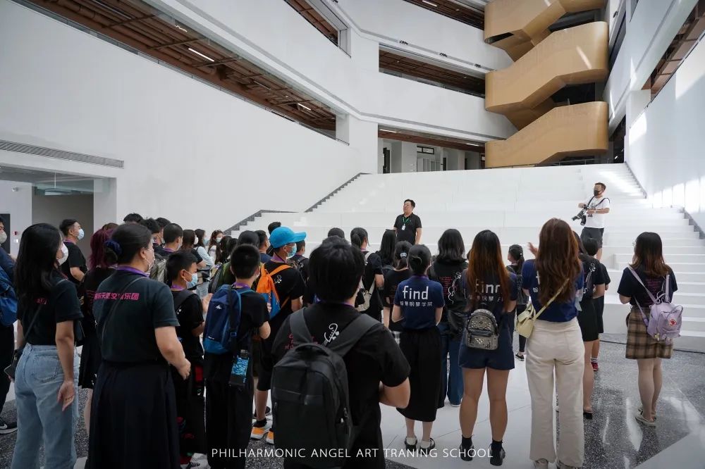 第一站从音乐教学楼开始,由招生总监刁航先生带领我们进行参观,同时从建筑学的视角讲解了建筑设计与音乐的完美结合及校园空间的安全理念等。