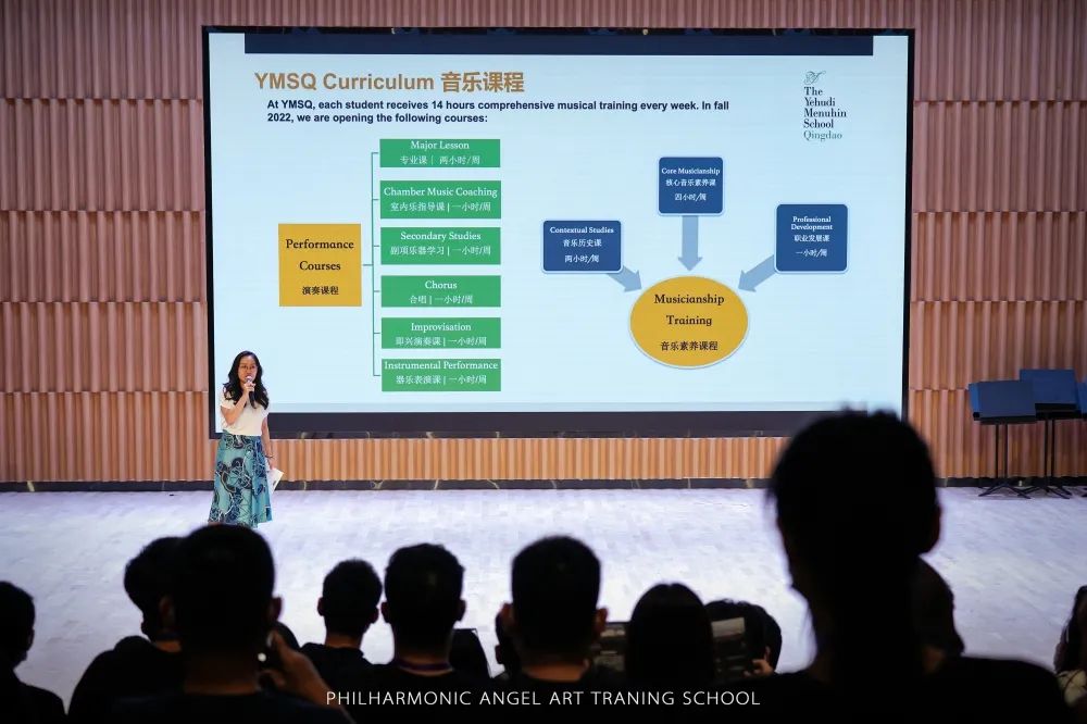 茱莉亚博士张宁老师为我们介绍了学校的教学理念以及学校的音乐课程体系。