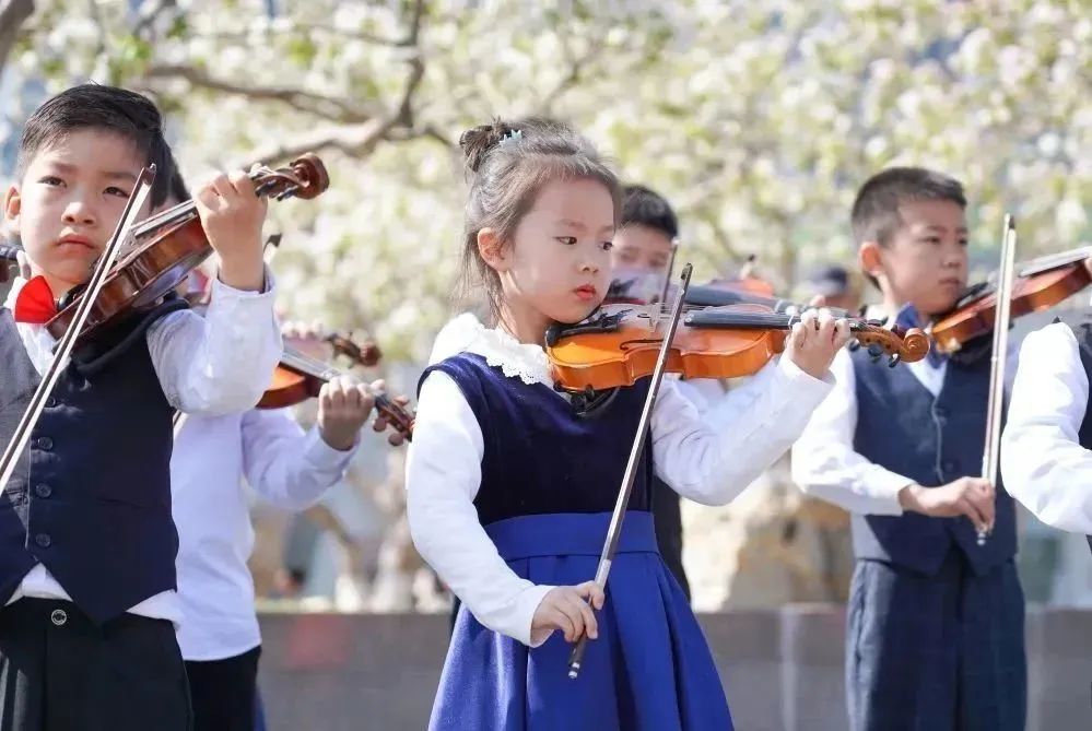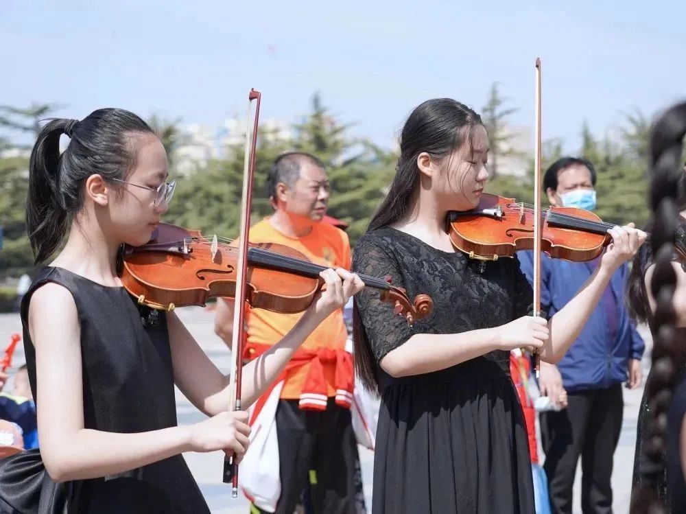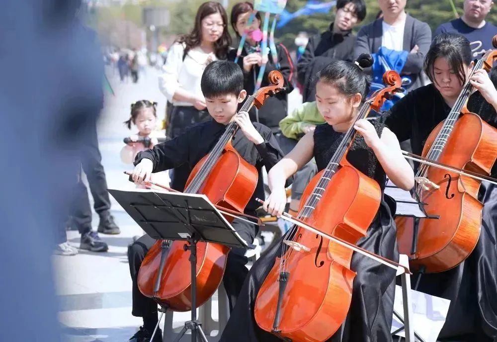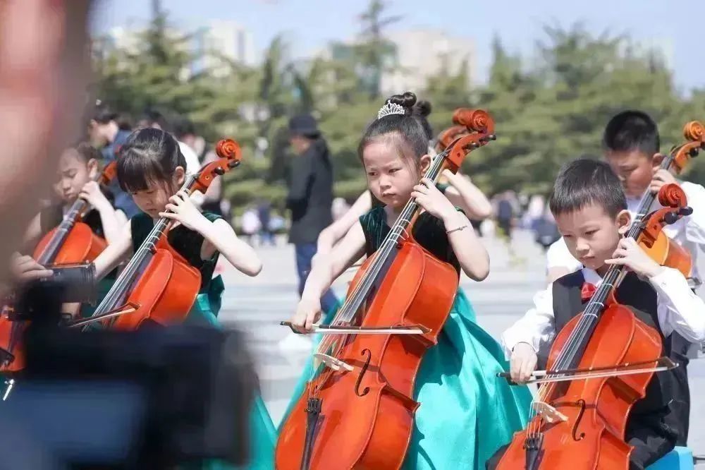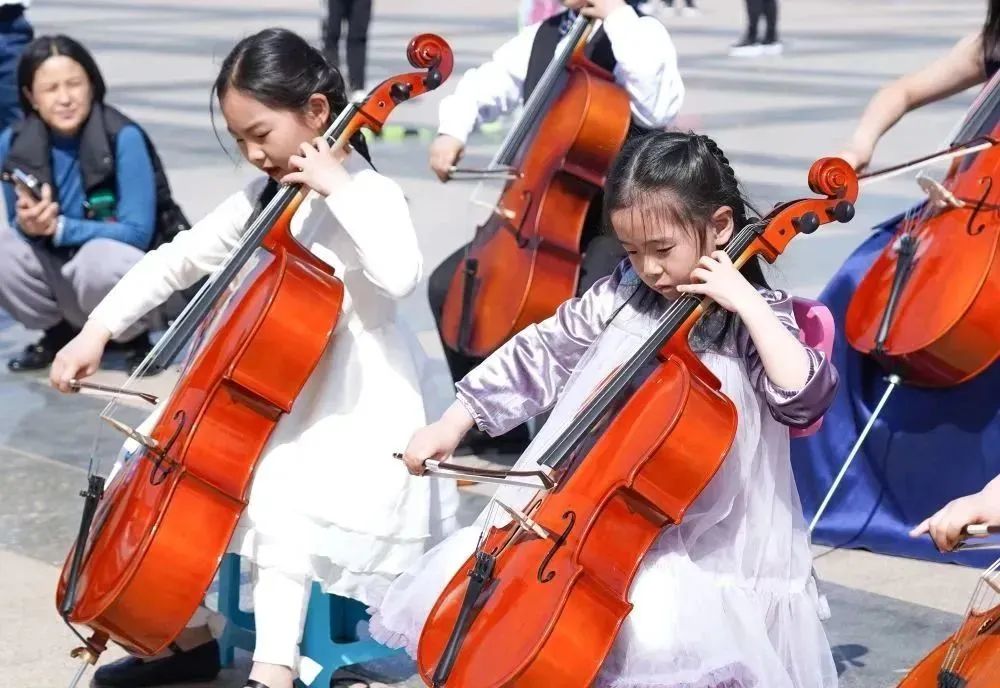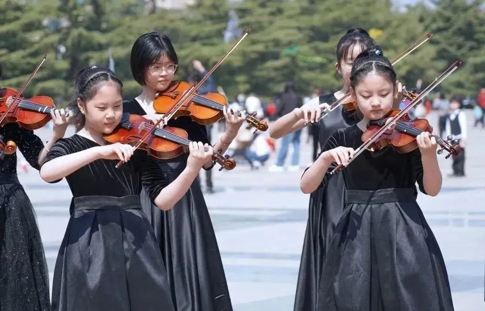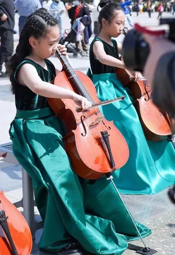 在拍摄过程中,小学员们面对镜头和驻足的观众时,依然拿出了自己最好的状态进行演奏。俗话说“台上一分钟,台下十年功”,这也是平时坚持练习的成果。