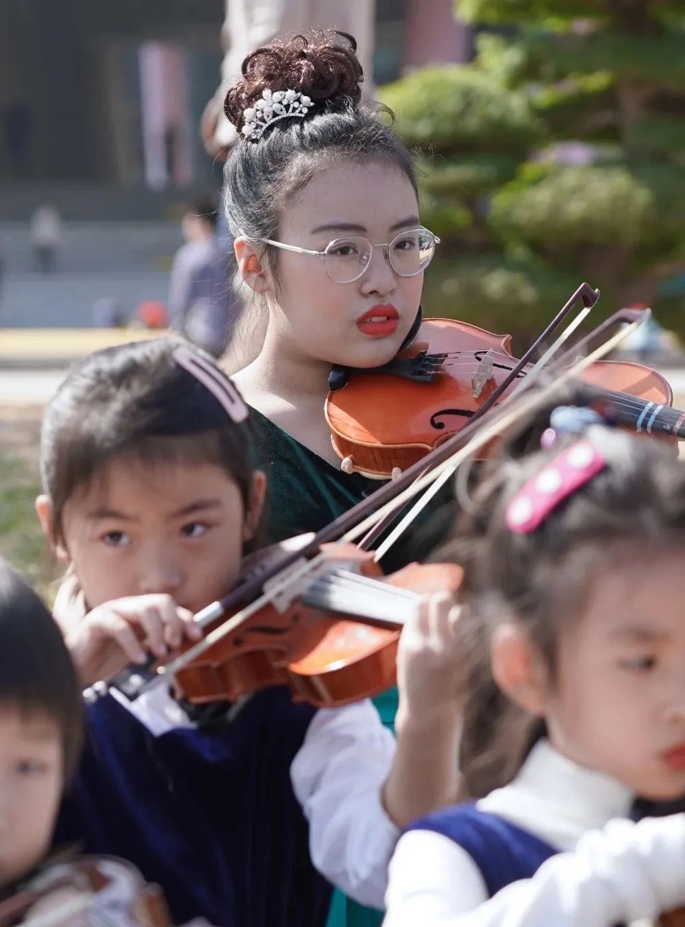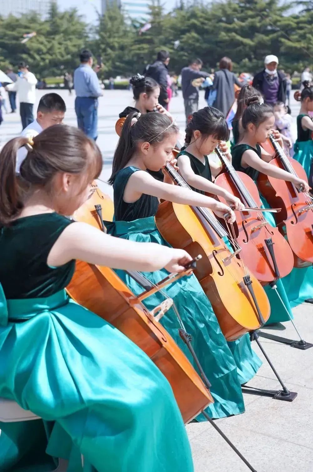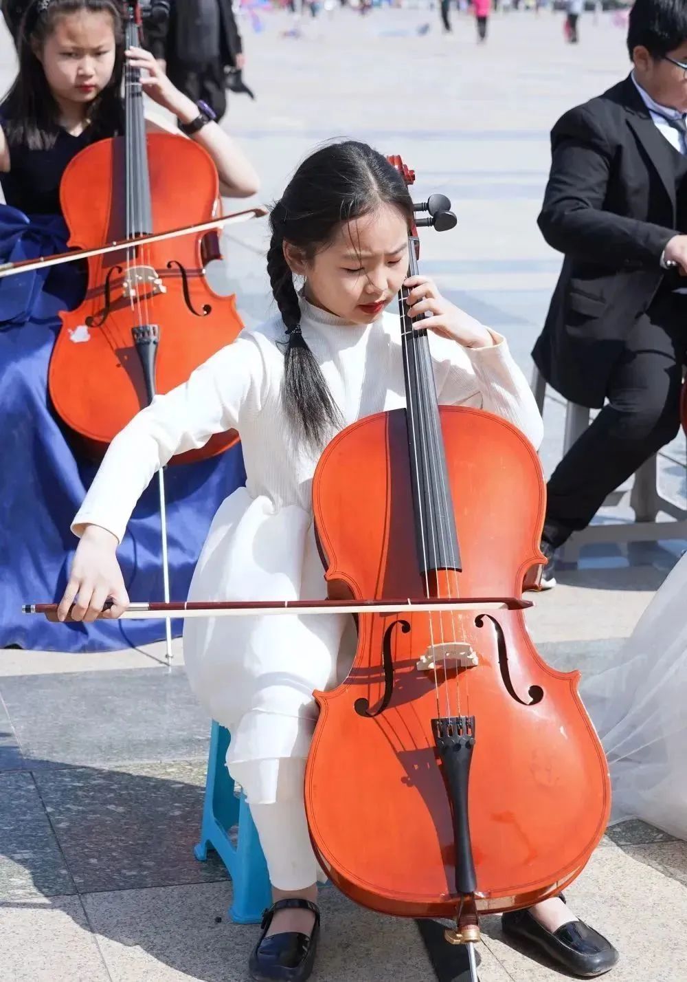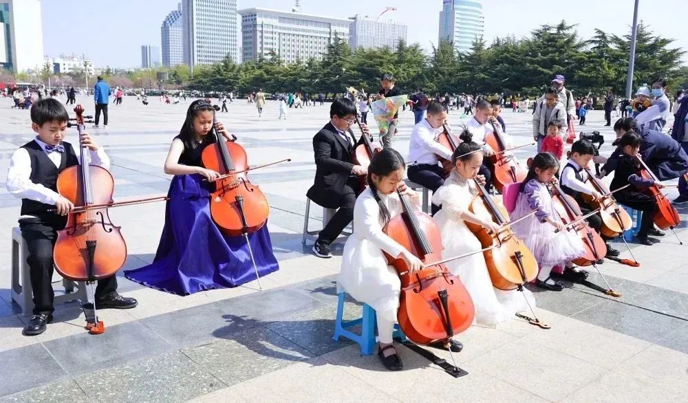 在拍摄过程中,小学员们面对镜头和驻足的观众时,依然拿出了自己最好的状态进行演奏。俗话说“台上一分钟,台下十年功”,这也是平时坚持练习的成果。