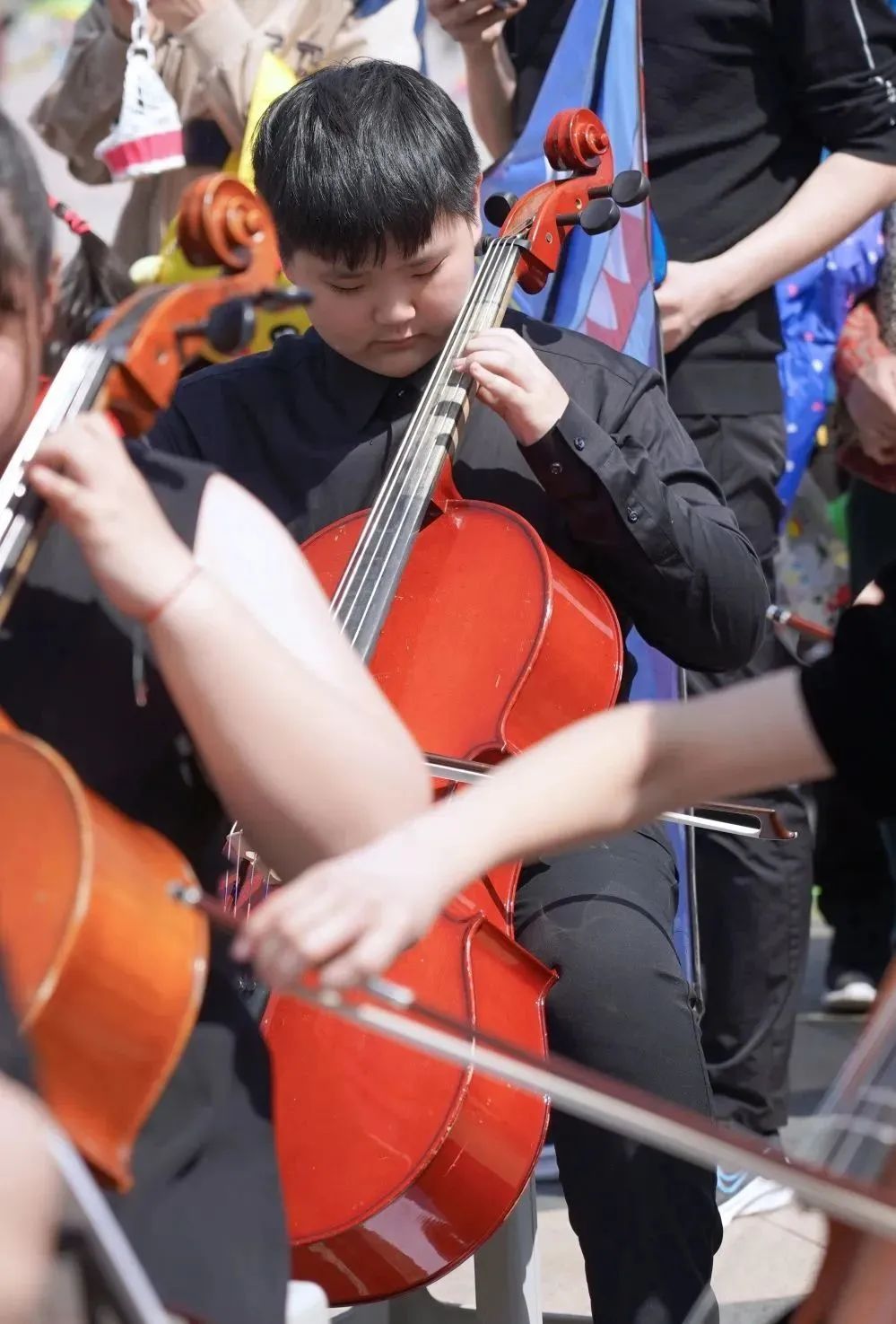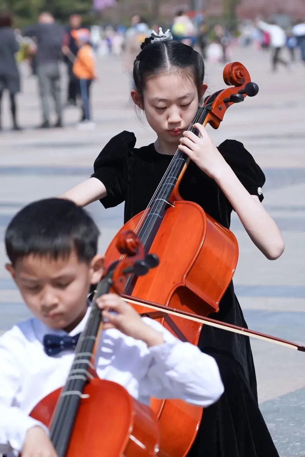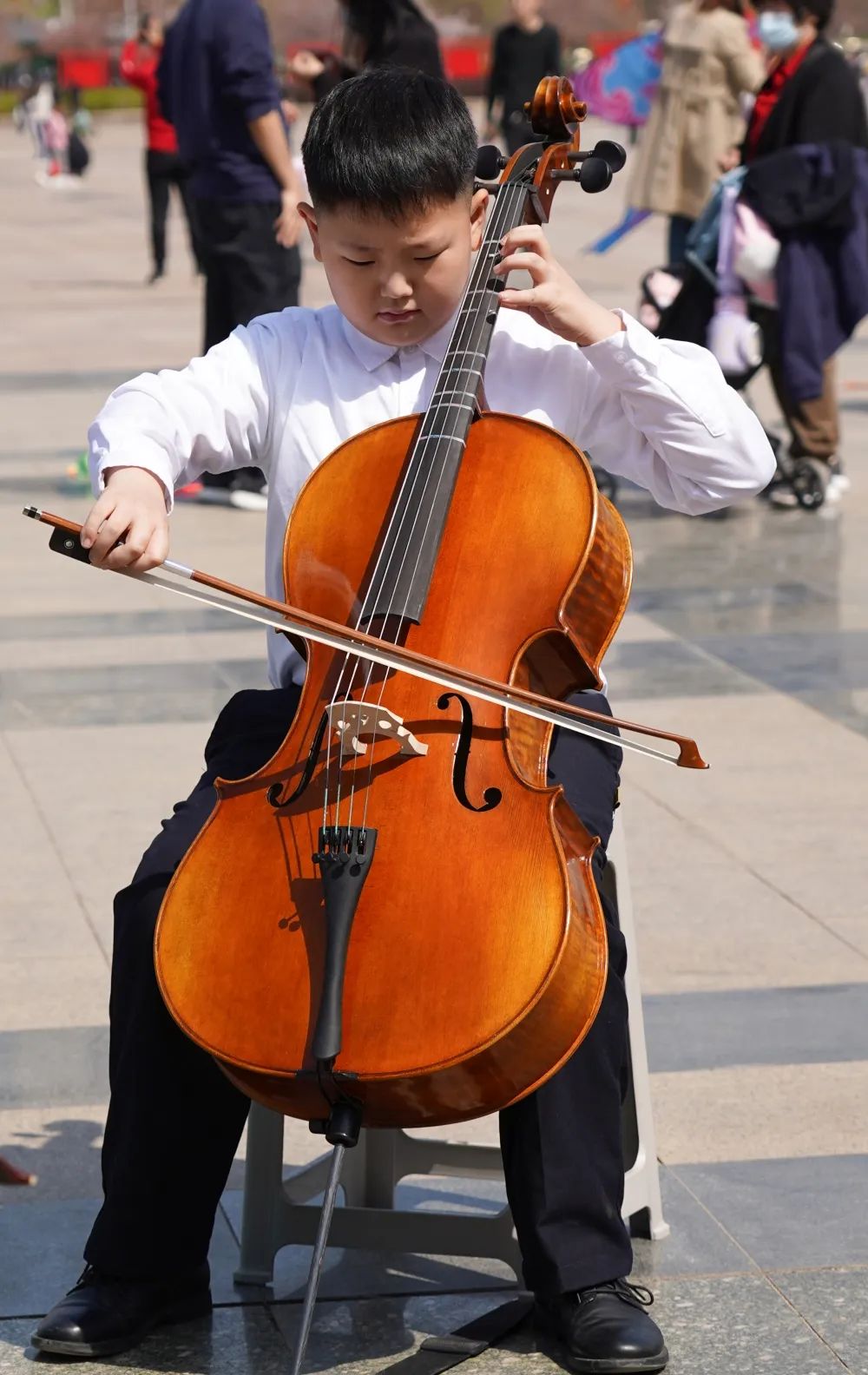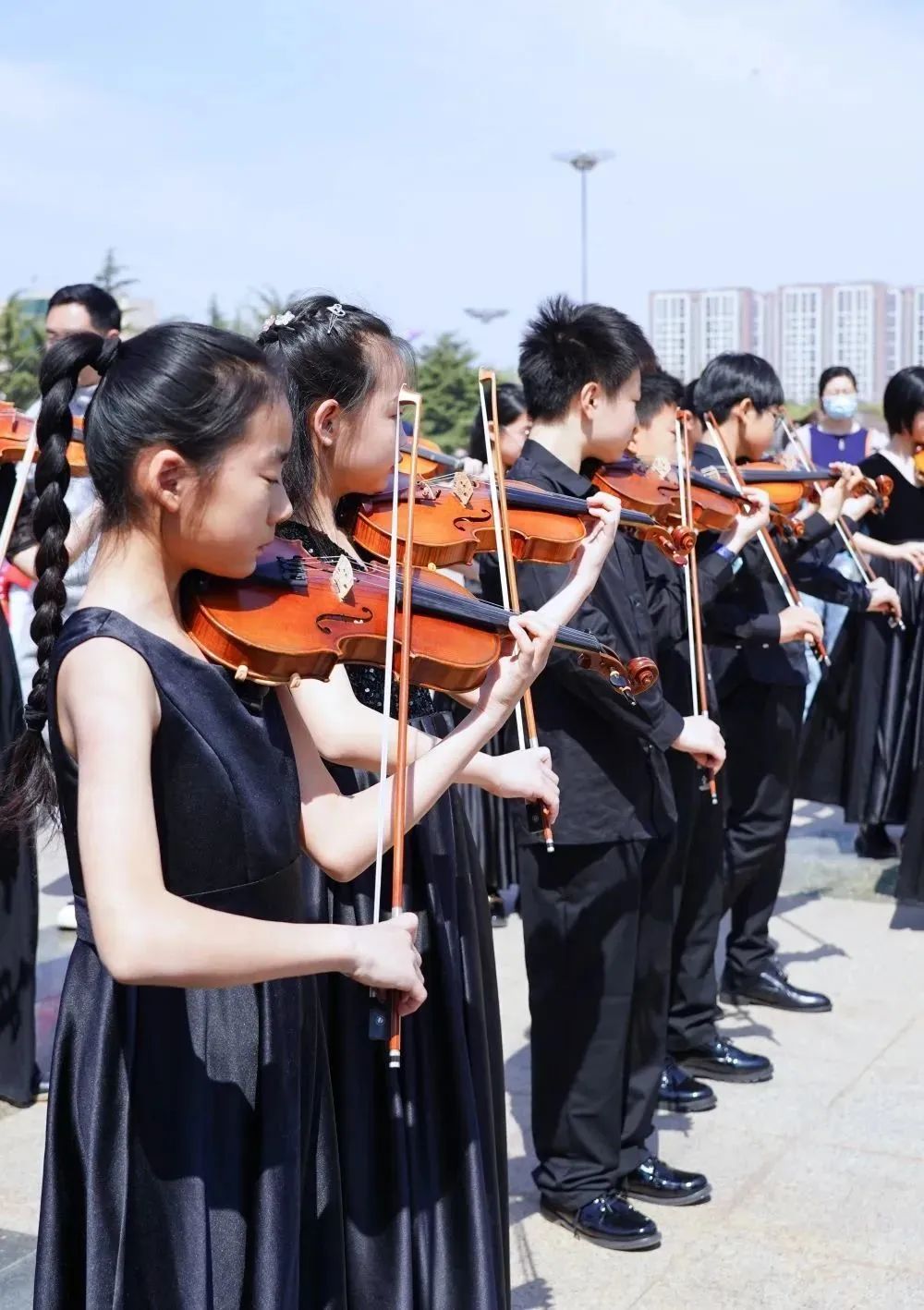 在拍摄过程中,小学员们面对镜头和驻足的观众时,依然拿出了自己最好的状态进行演奏。俗话说“台上一分钟,台下十年功”,这也是平时坚持练习的成果。