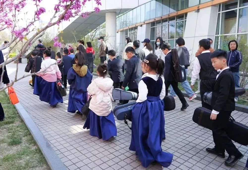 爱乐天使的小学员们在音乐厅前做最后的准备