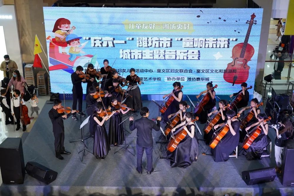 2023年5月28日,潍坊市妇女儿童活动中心、奎文区妇女联合会、奎文区文化和旅游局联合爱乐天使在潍坊泰华城举办了“庆六一”潍坊市“童响未来”城市主题音乐会。