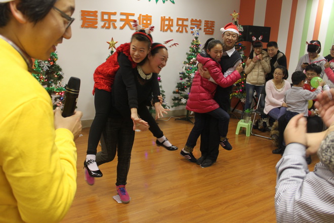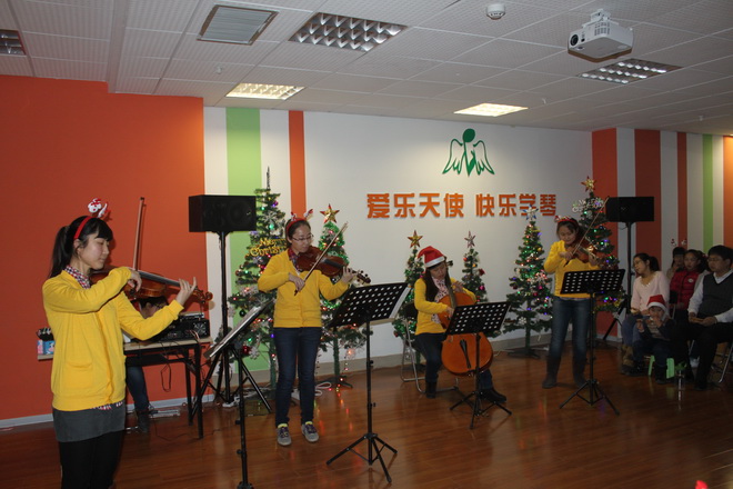 新年的钟声即将敲响,爱乐天使艺术学校于2013年12月21日晚举办圣诞party,当晚学校为家长和天使们精心准备了美味的冷餐,活动由精彩的弦乐四重奏演奏开始,在浓浓的圣诞气氛中享受着节日的欢乐和音乐的魅力。当晚的小游戏和家长们积极踊跃的表演节目,把晚会进行到了高潮,圣诞老人送礼物,孩子们许下了新年的愿望,活动寄托了学校对天使们的节日美好祝福,增进家长与孩子们之间的感情,希望通过举办晚会的形式来寄托节日的祝福和天使们的新年愿望。当晚的活动非常的成功,学生和家长给出很高的评价,觉得此次活动开展的非常有意义,我们进行着这种亲子活动,促进了孩子和家长的感情交流,也让我们和家长近距离的接触,互相学习,共同进步。