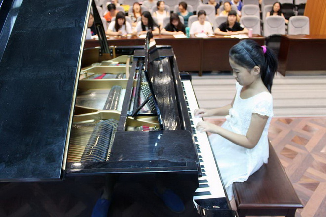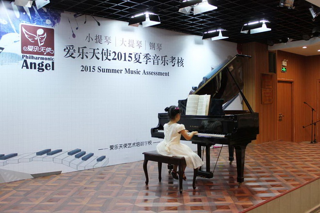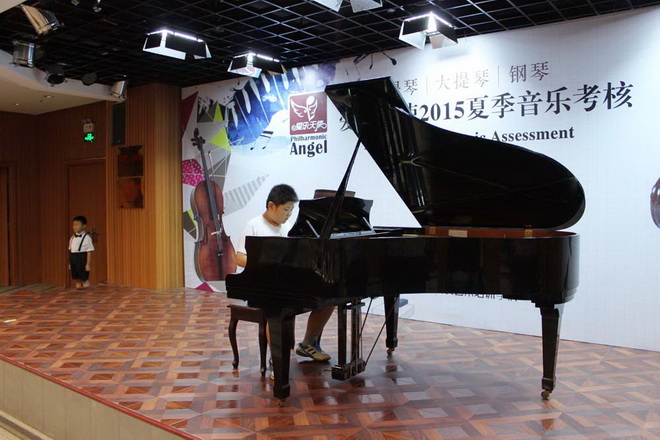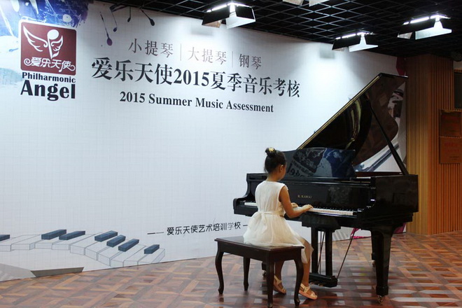 2015年7月11日上午,爱乐天使艺术培训学校夏季音乐考核第二场钢琴专场于京广校区举办。学员们上台演奏表演各自的考试曲目,由台下的专业评委老师对其表现进行打分。家长们纷纷到场观摩欣赏孩子们的考核演出。