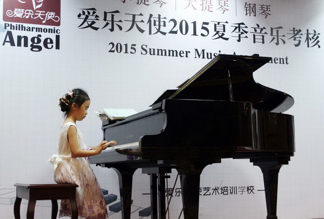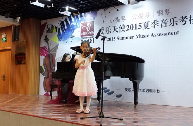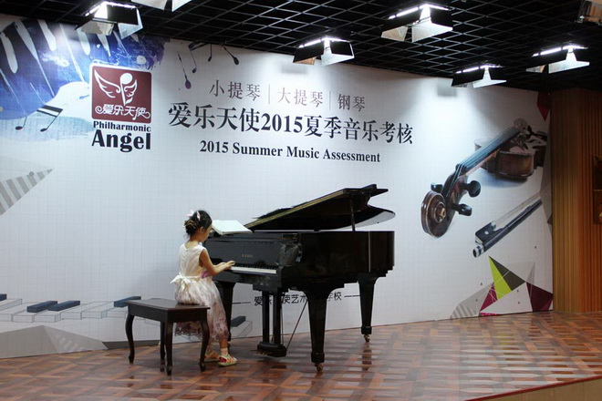 2015年7月11日下午,爱乐天使艺术培训学校夏季音乐考核第三场于京广校区举办。学员们在钢琴艺术指导高源老师的配合下上台演奏表演各自的考试曲目,由台下的专业评委老师对其表现进行打分。家长们纷纷到场观摩欣赏孩子们的考核演出。